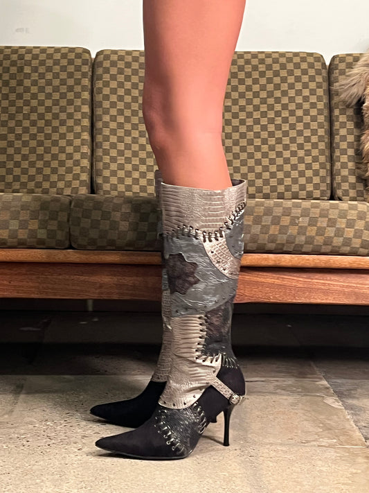Sold outWild Rose Patchwork Knee Boots