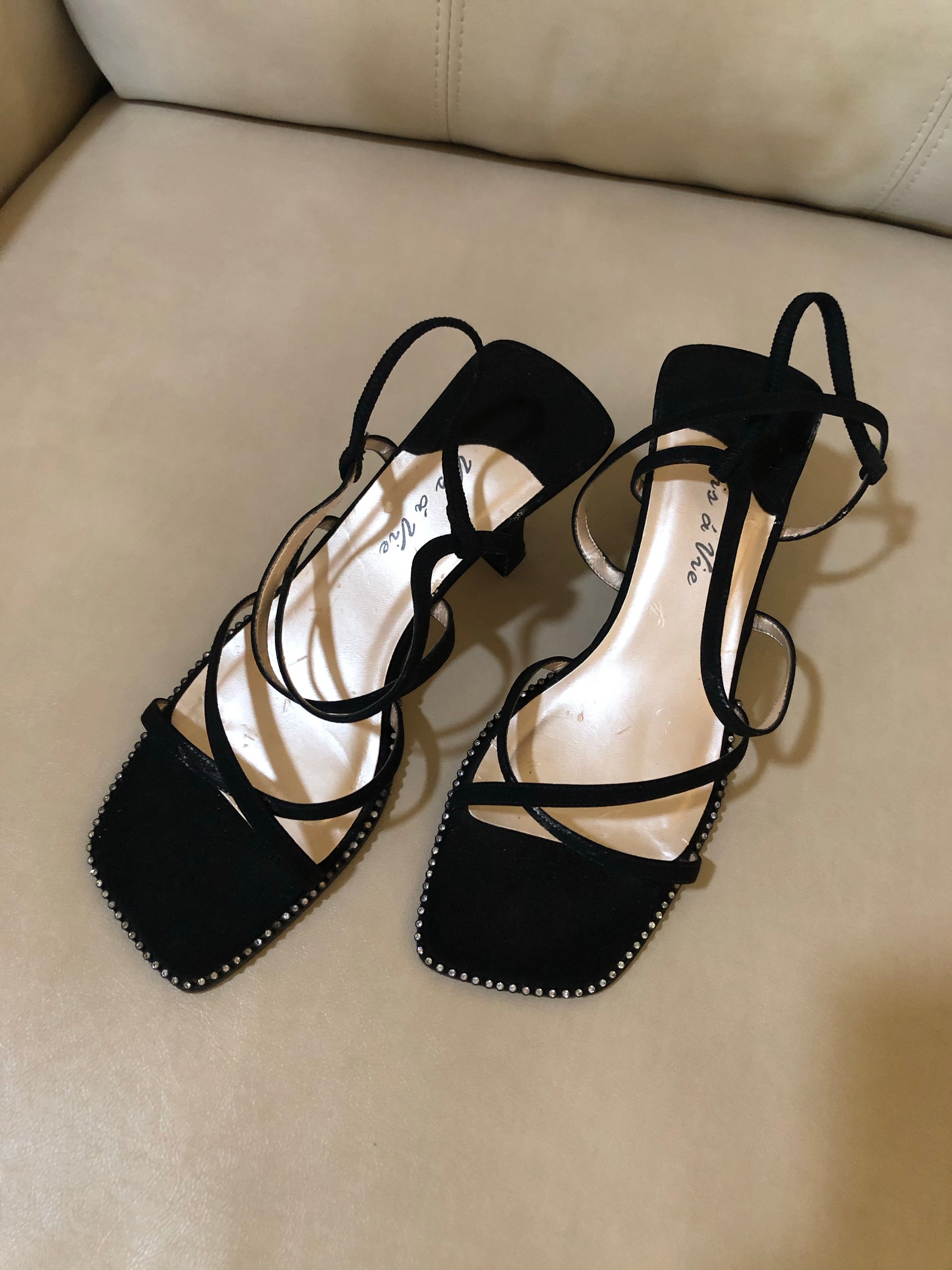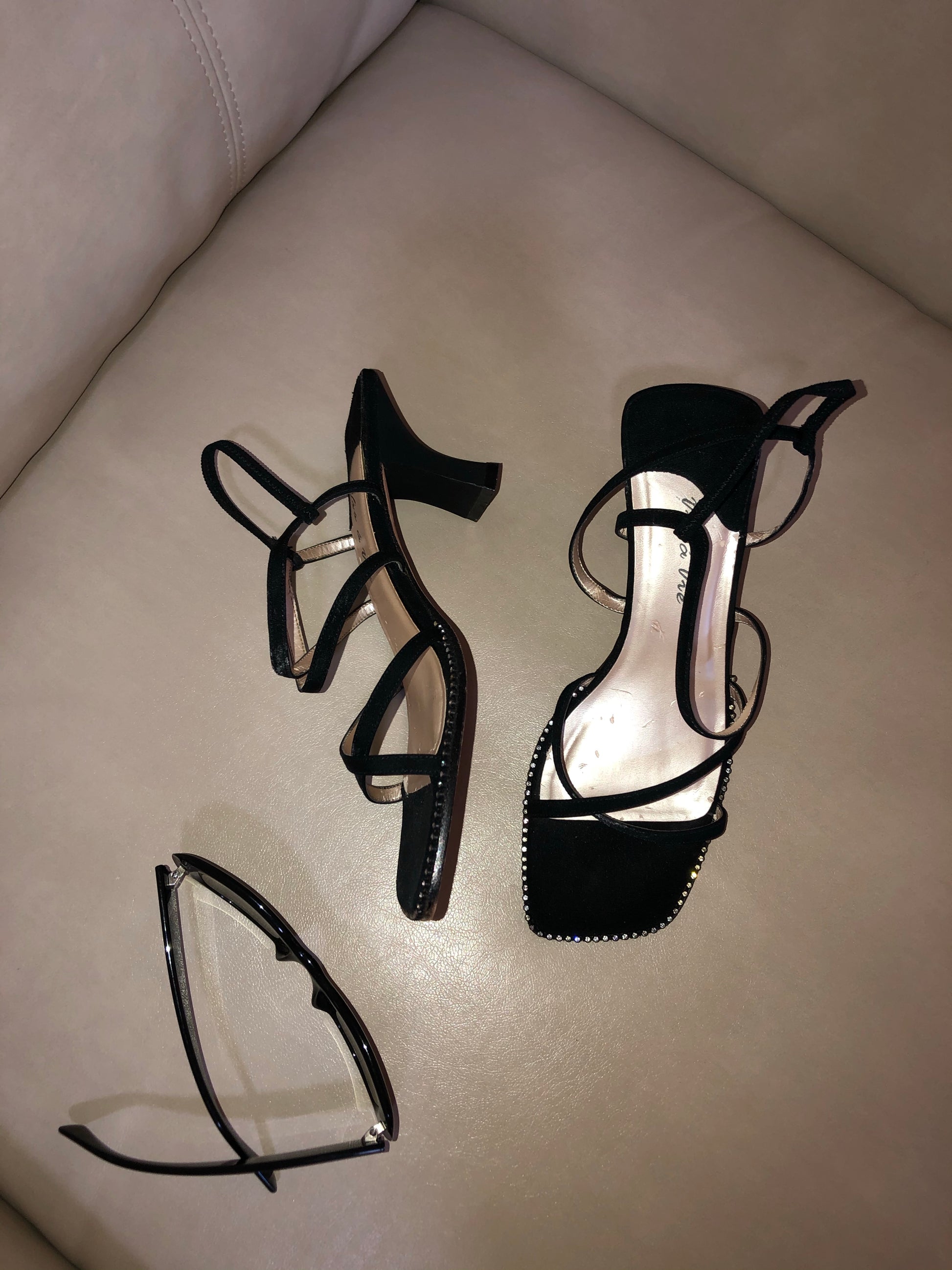 Amazing strappy 90’s sandals with a square toe and small short square heel.