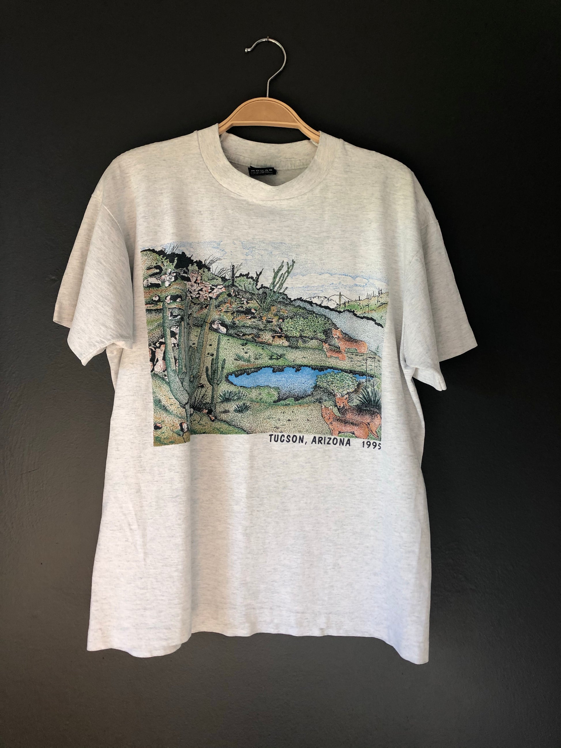 Vintage 1995 light grey Tucson, AZ desert scene with coyotes. This vintage tee is in amazing condition!!