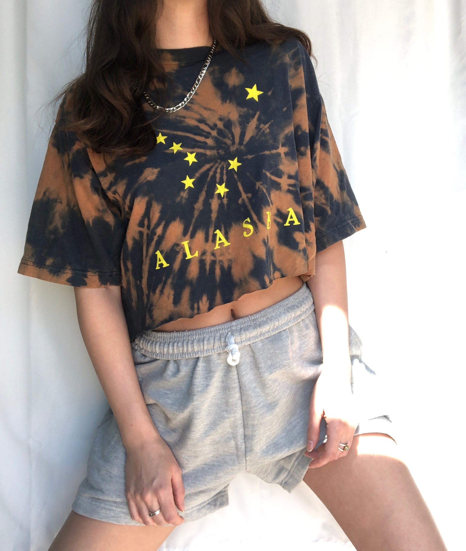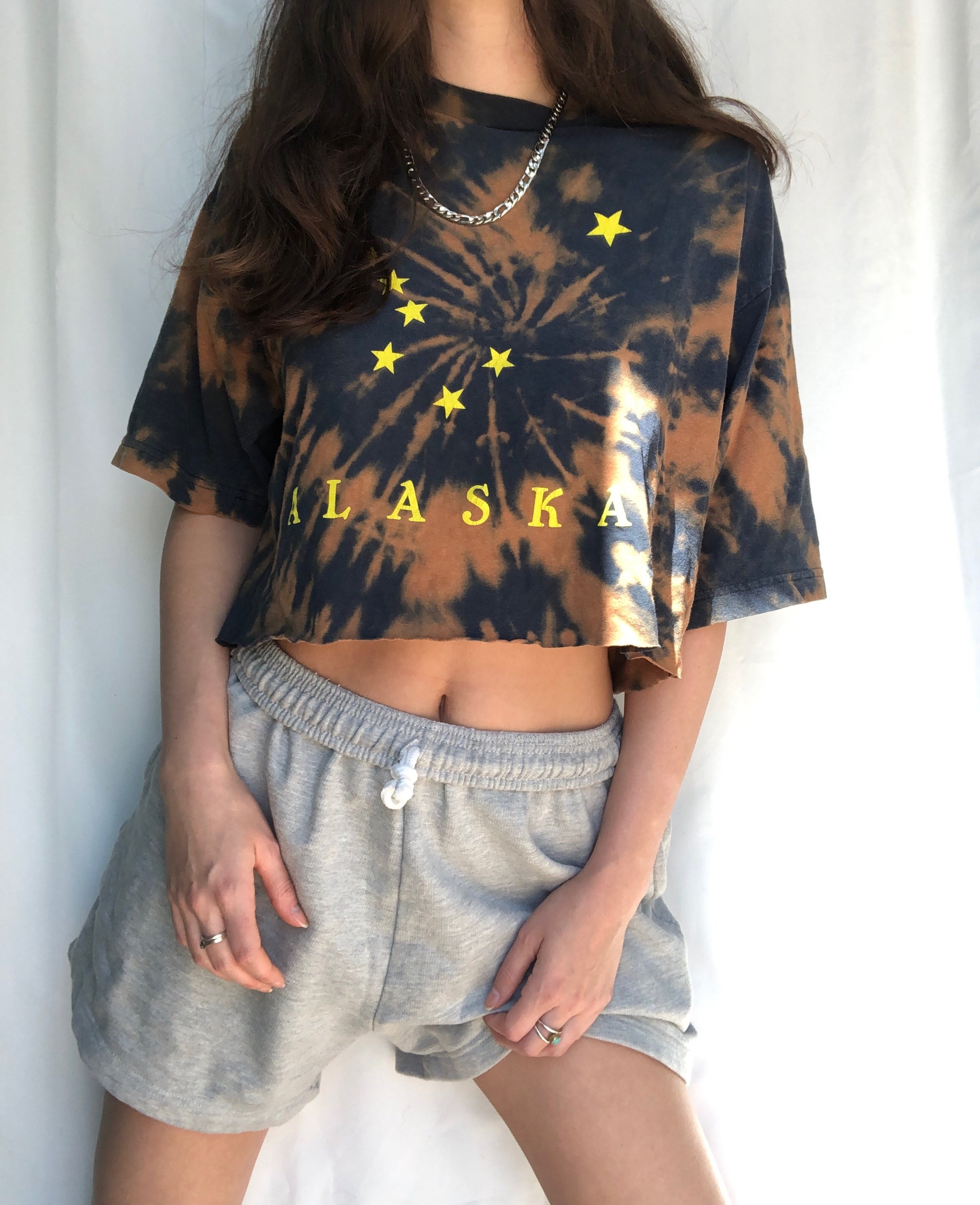 vintage paper thin navy blue bleach dyed Little Dipper constellation Alaska crop top