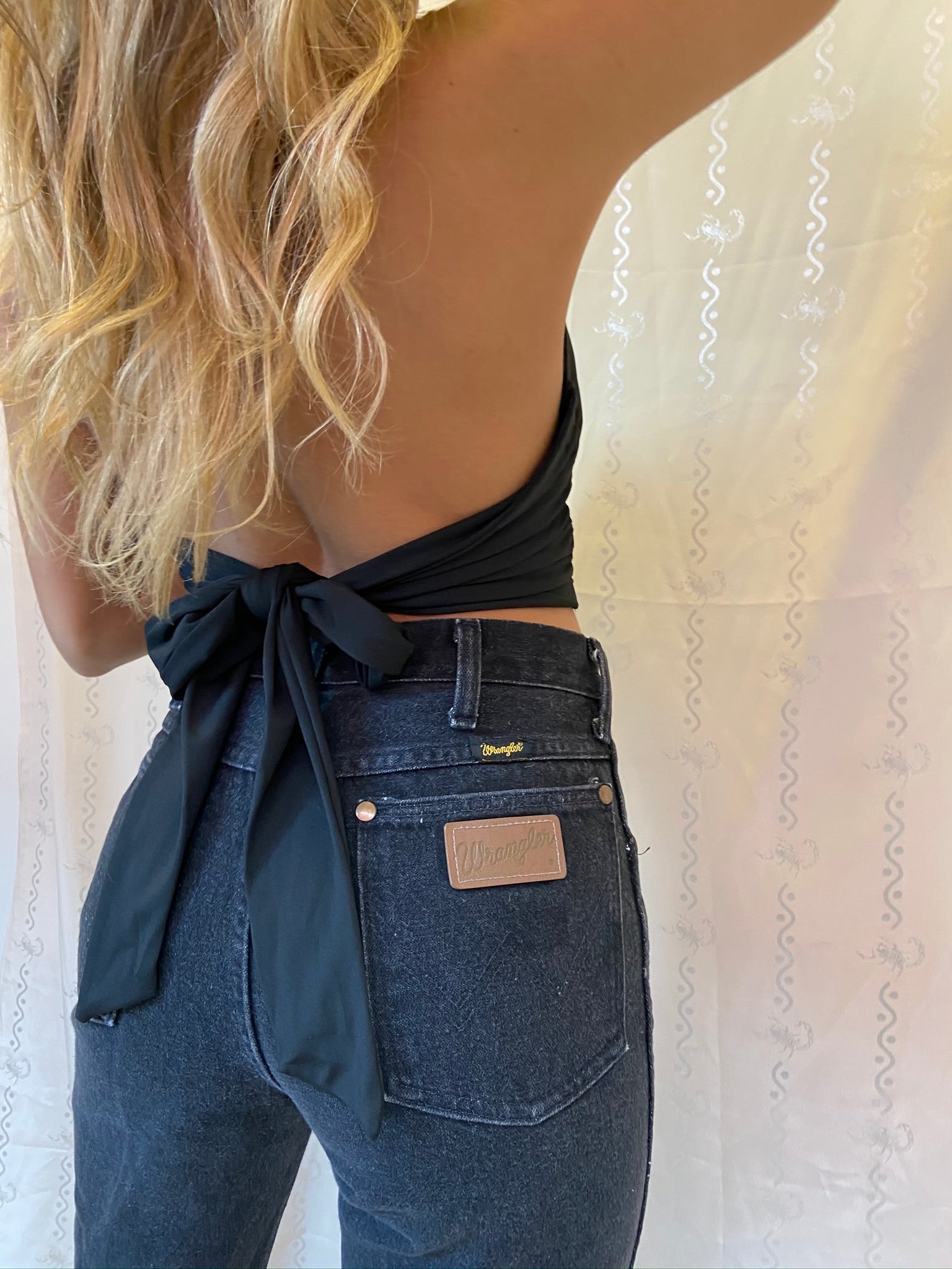 Assorted high waist black wrangler straight leg vintage jeans. These are all literally to die for. Some more faded than others. Model is 5’7” with a 26” waist