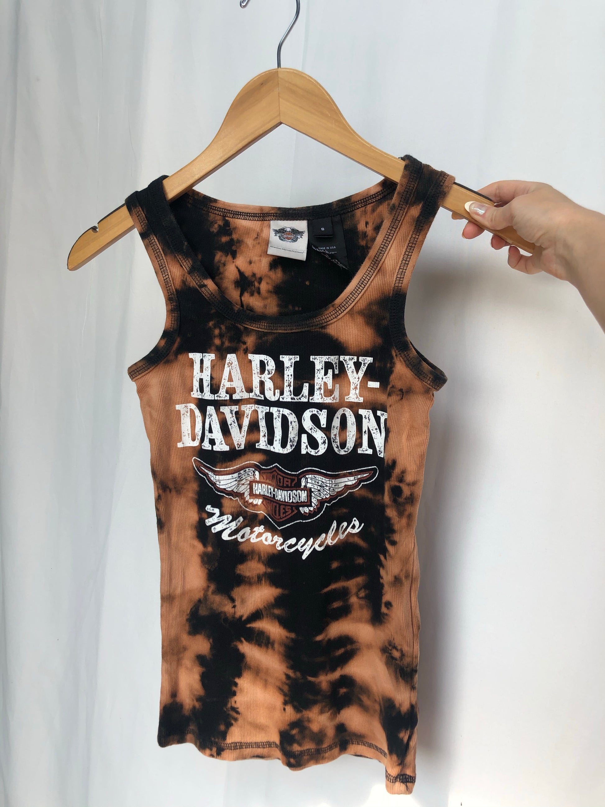 Harley Davidson ribbed bleach dyed black tank with burnout logo