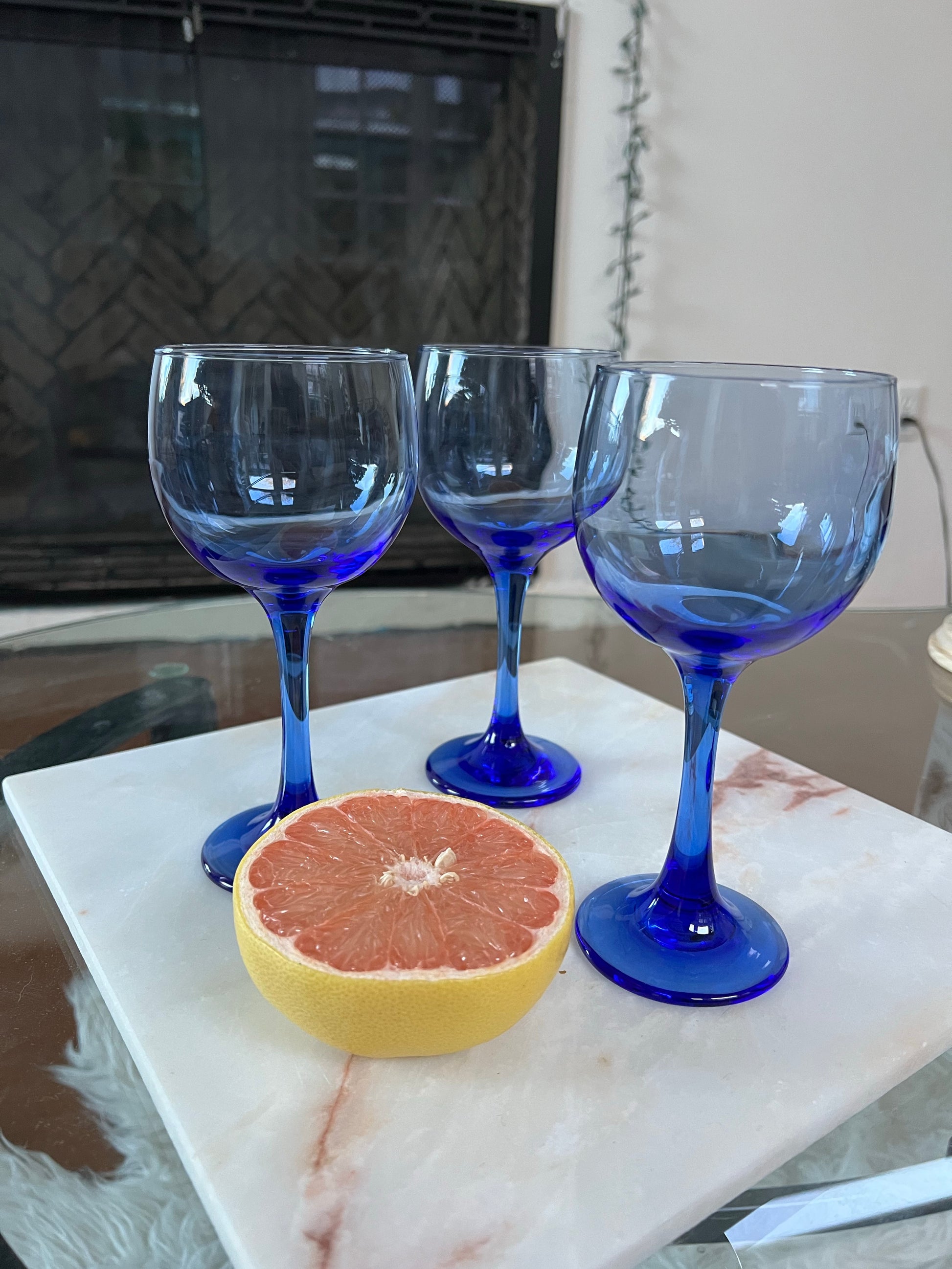 Vintage deep blue tinted wine glasses in that super hot Matisse blue color π, comes as a set of 3