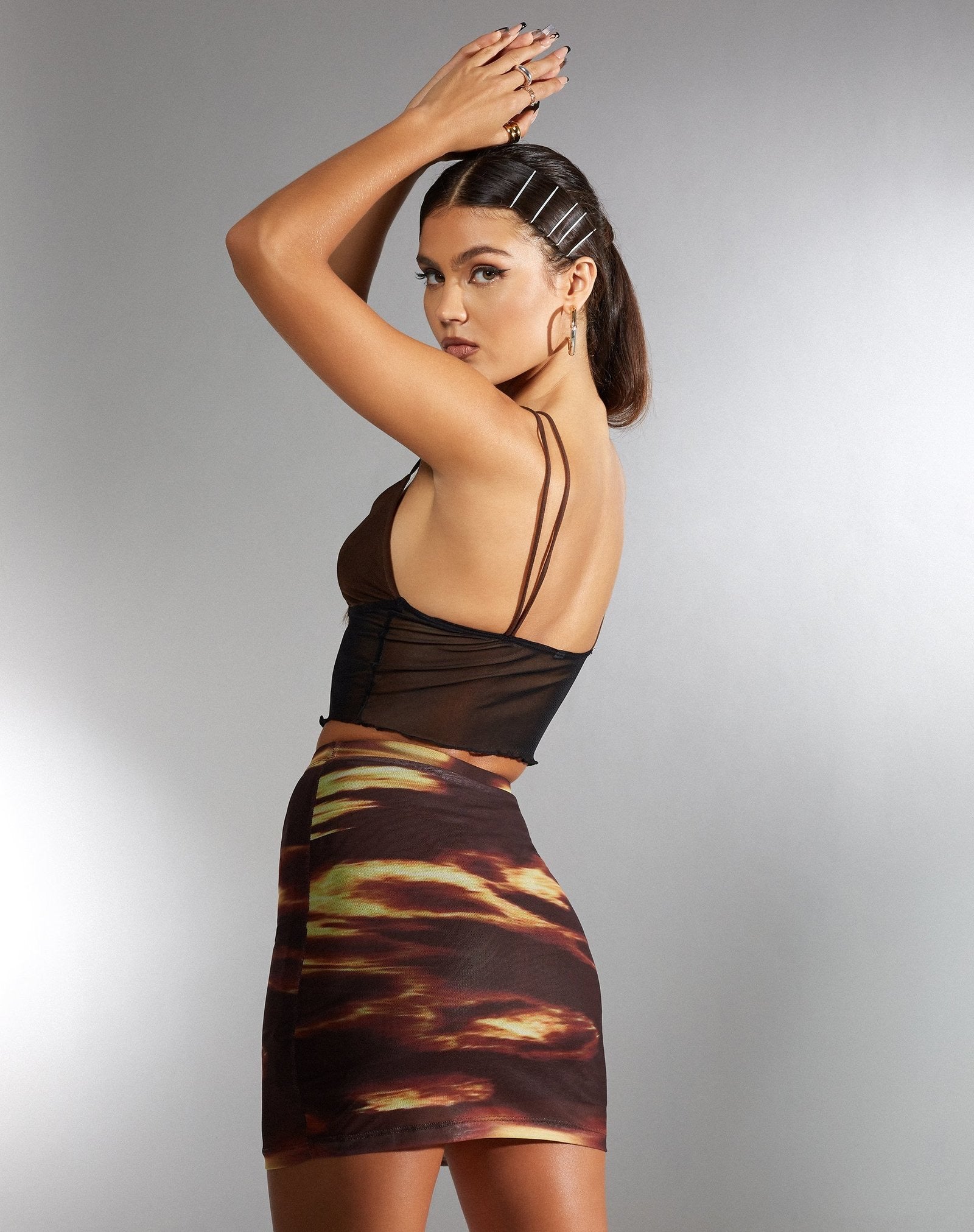 Get dressed up in our Olgi top. Featuring a cropped fit with thin strap detailing in a black and brown mesh.