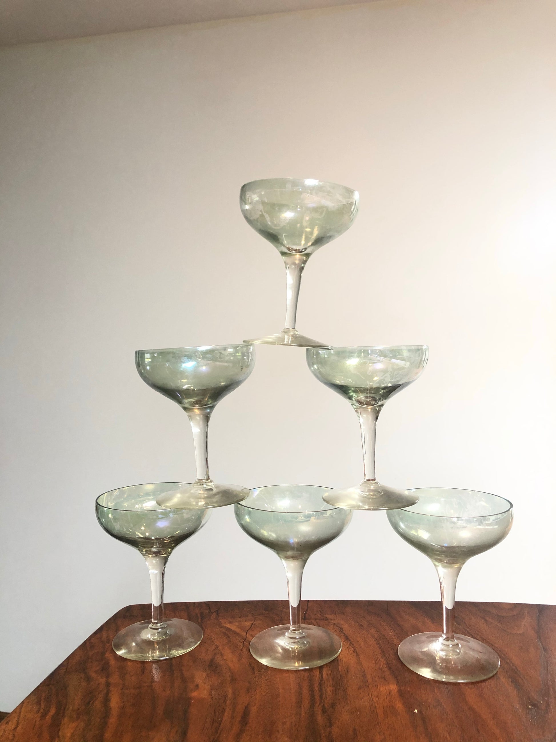 Set of 6 glasses vintage green cocktail glasses. Sure to class up any sunset picnic.