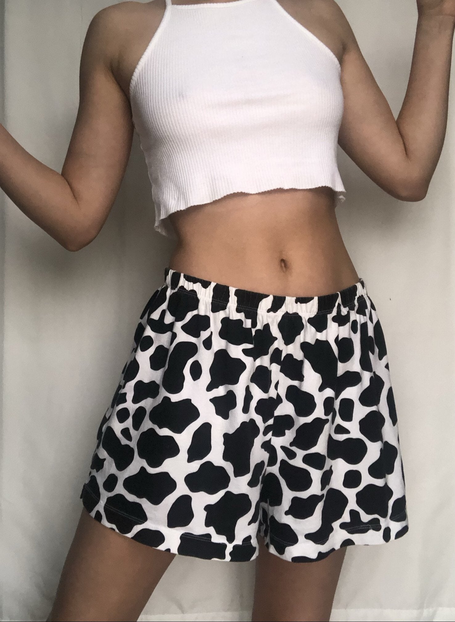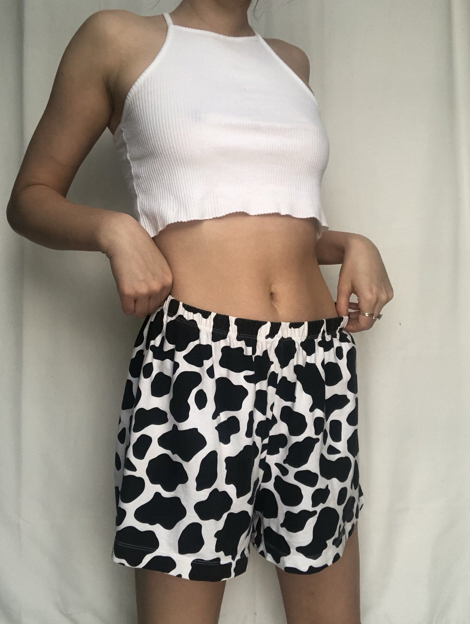 Elastic waist band, comfy baggy lightweight cow print lounge shorts