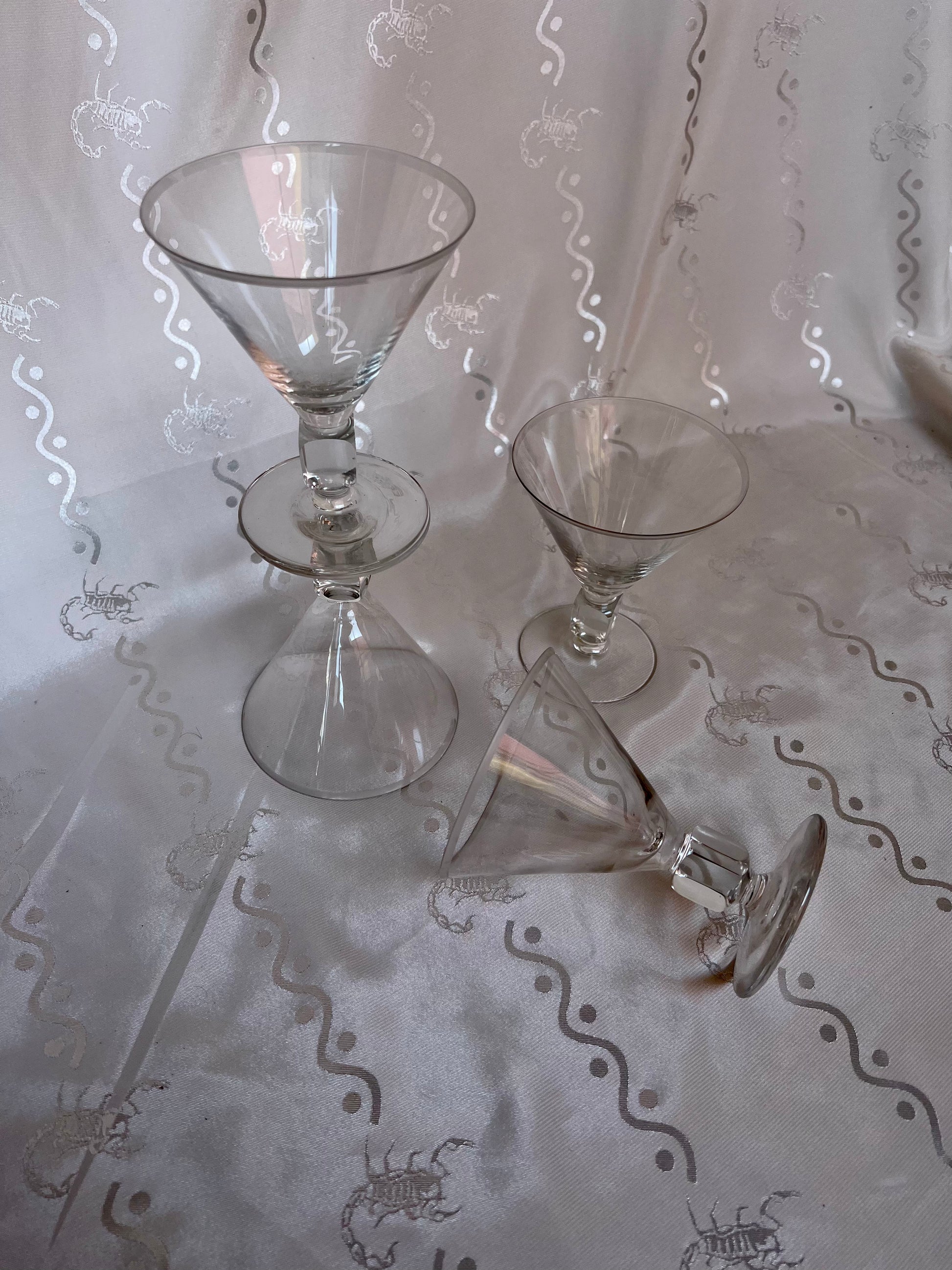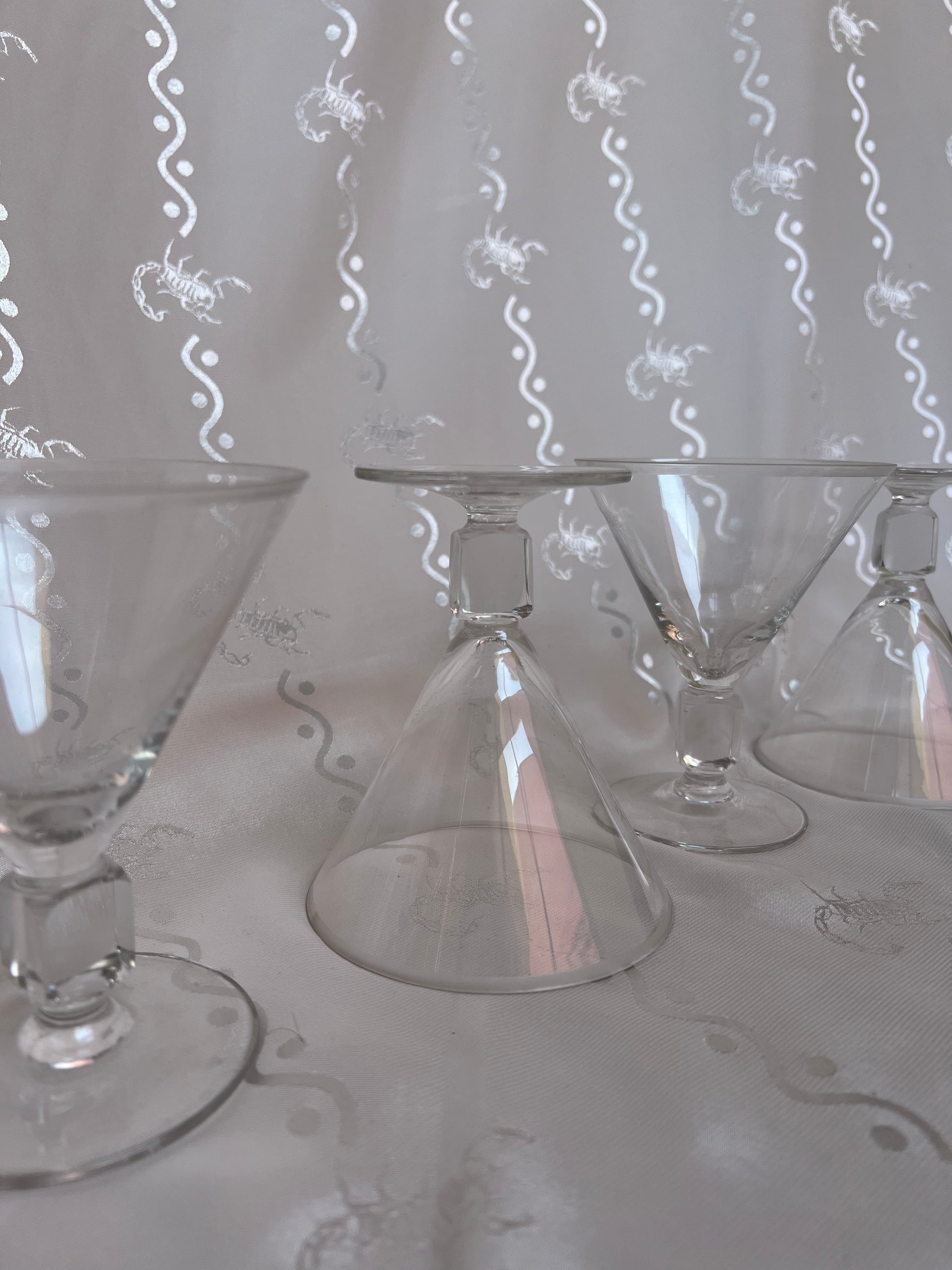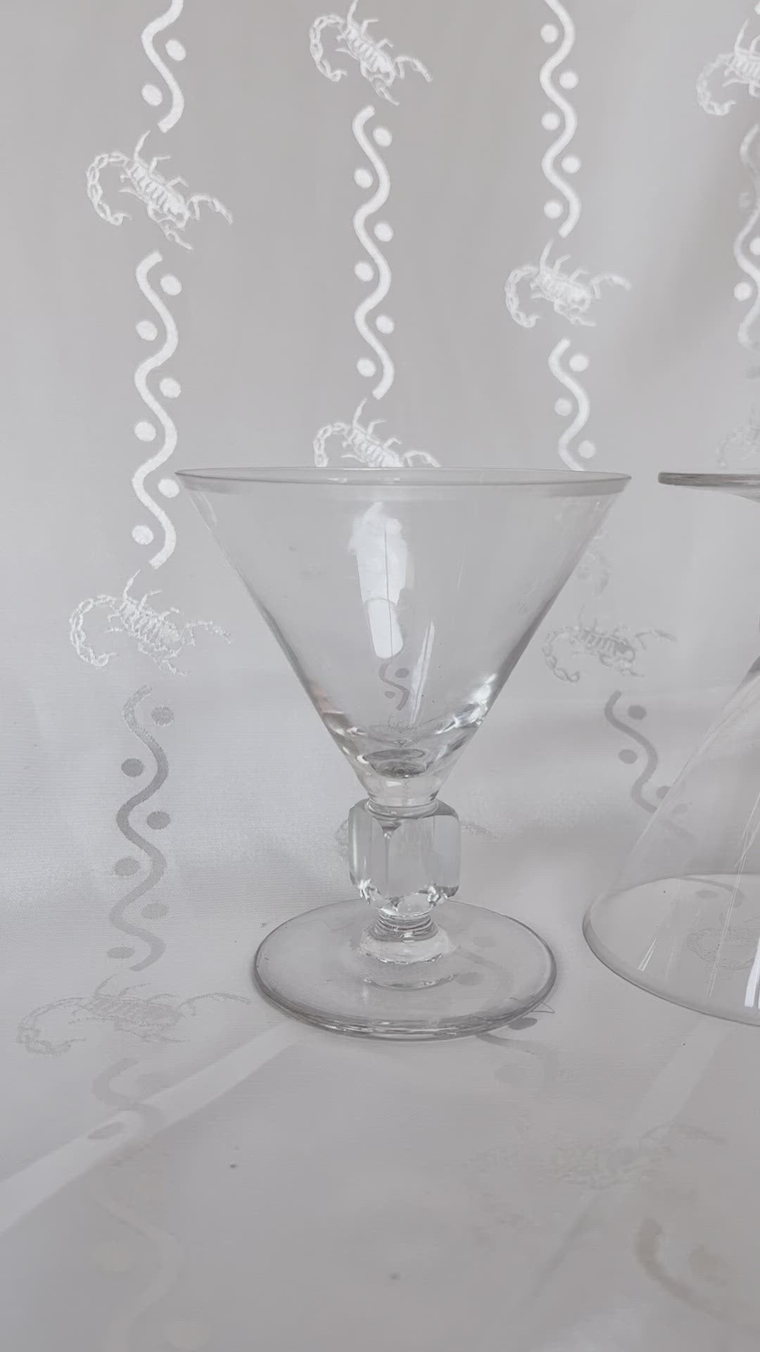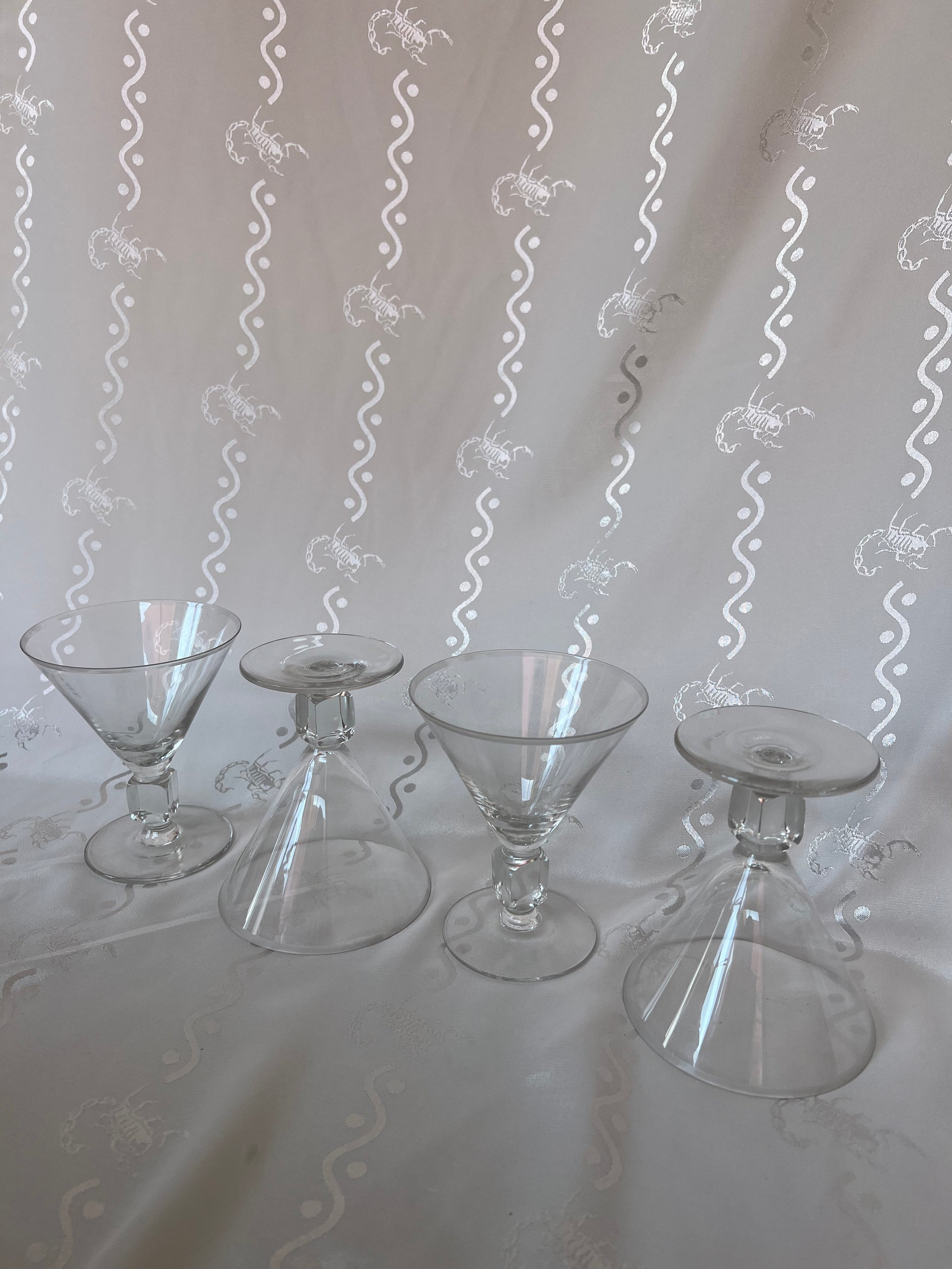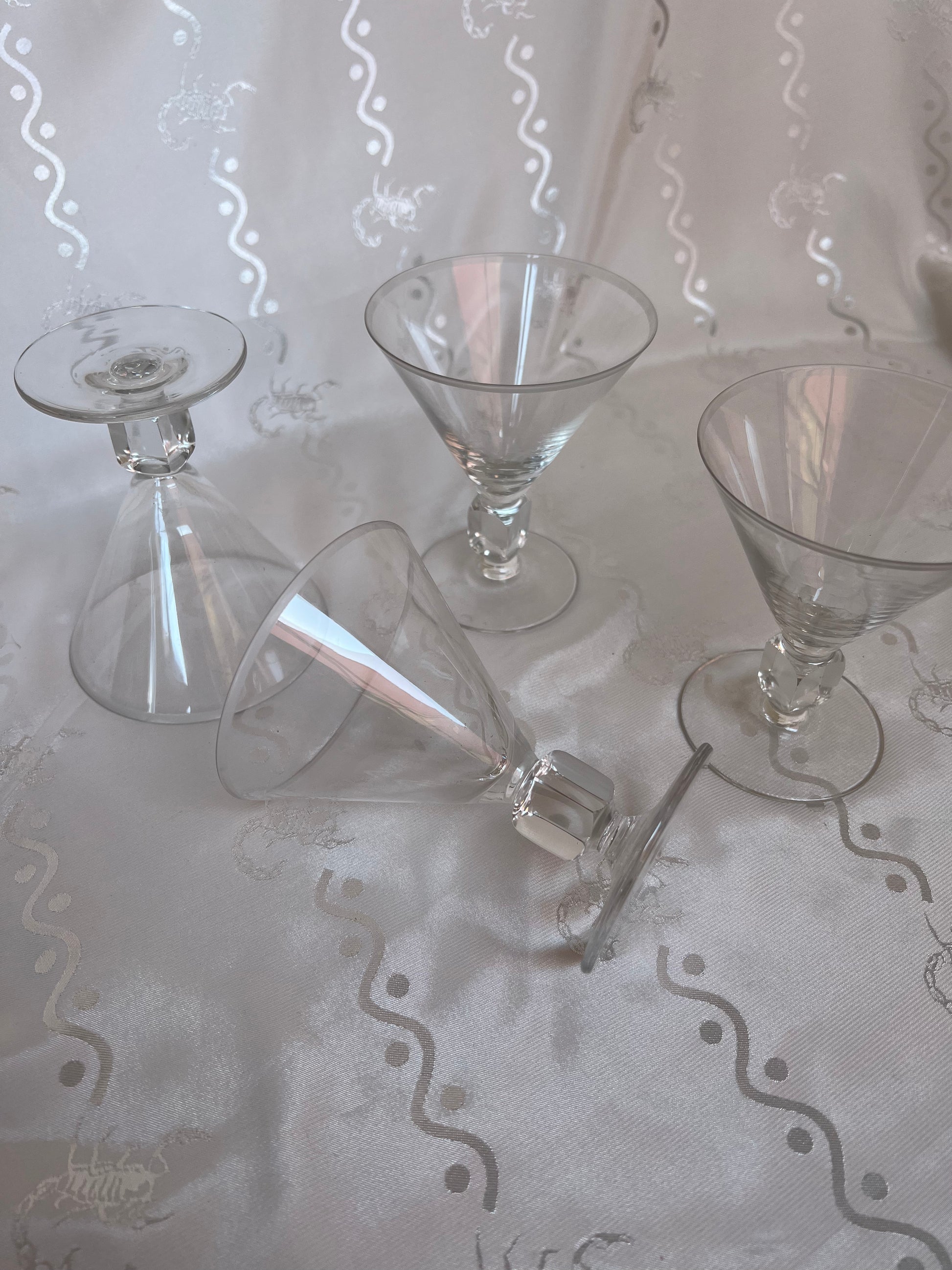Vintage genuine crystal short martini glasses with cube stem detail.