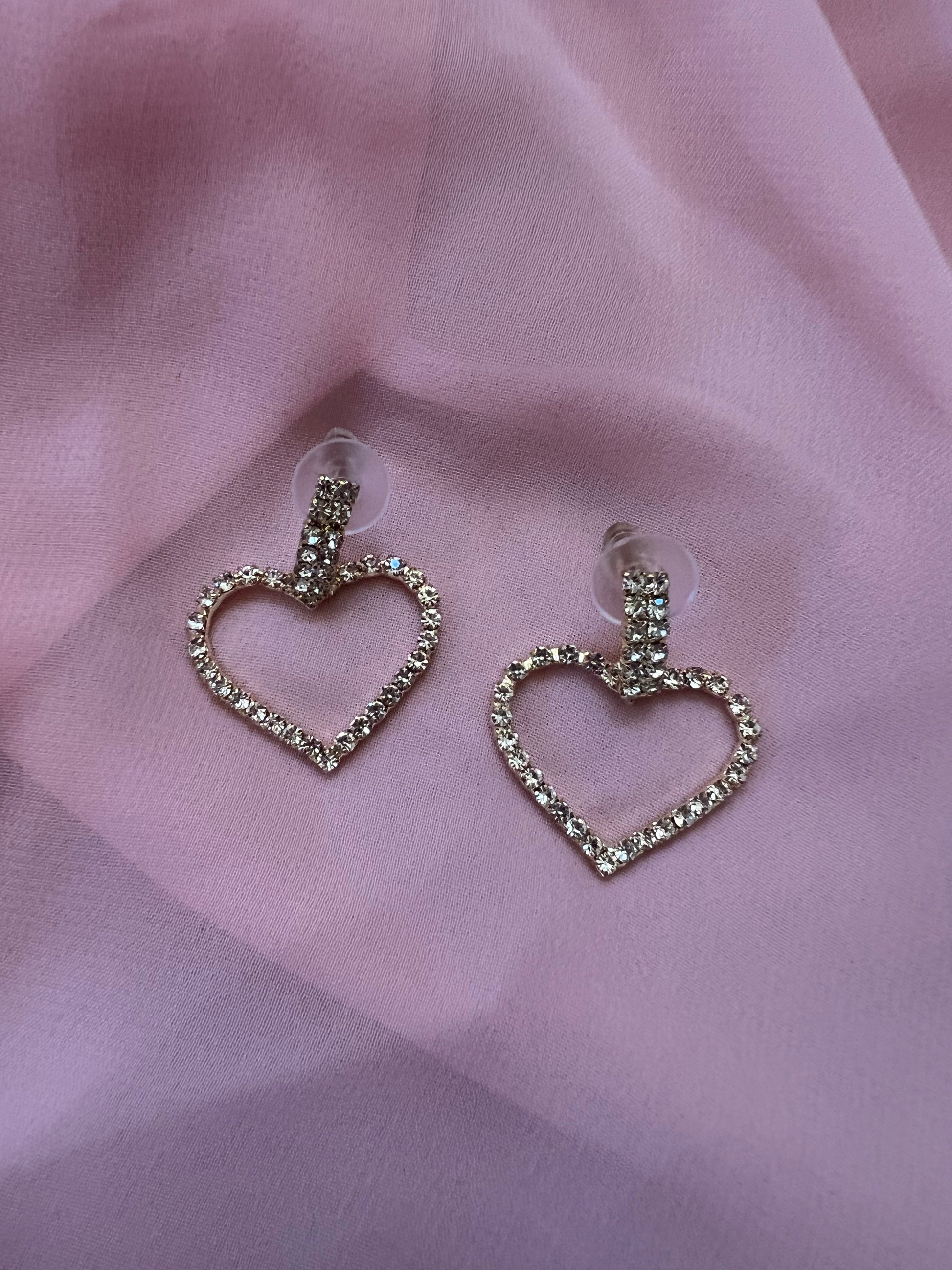 Gold plated over sterling silver heart drop earrings with cubic zirconia crystals. Post back.