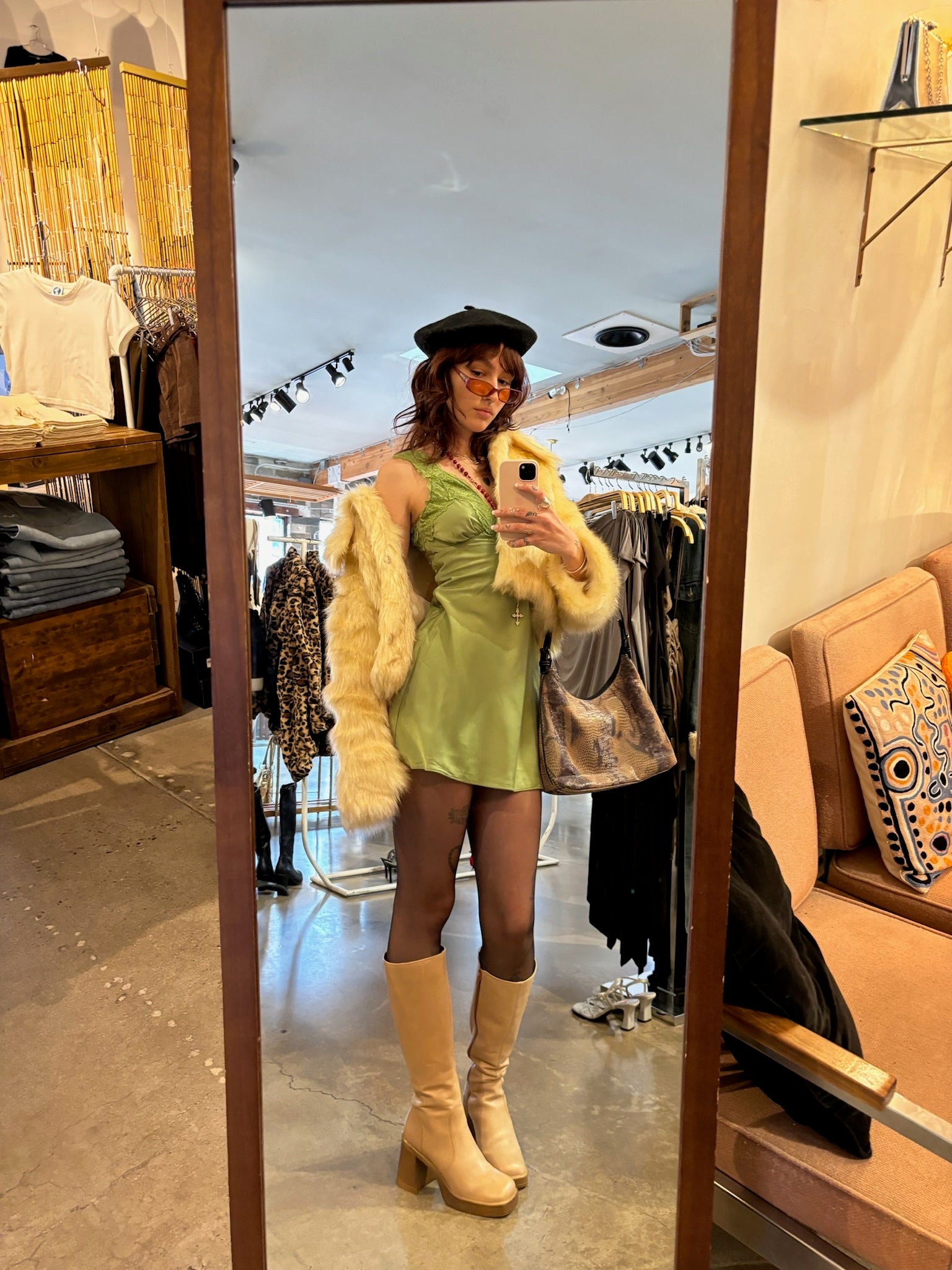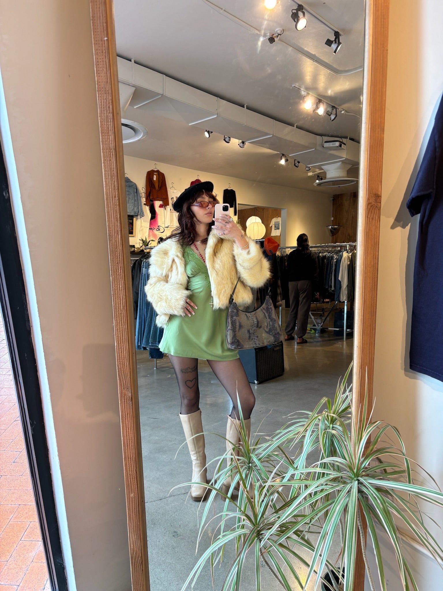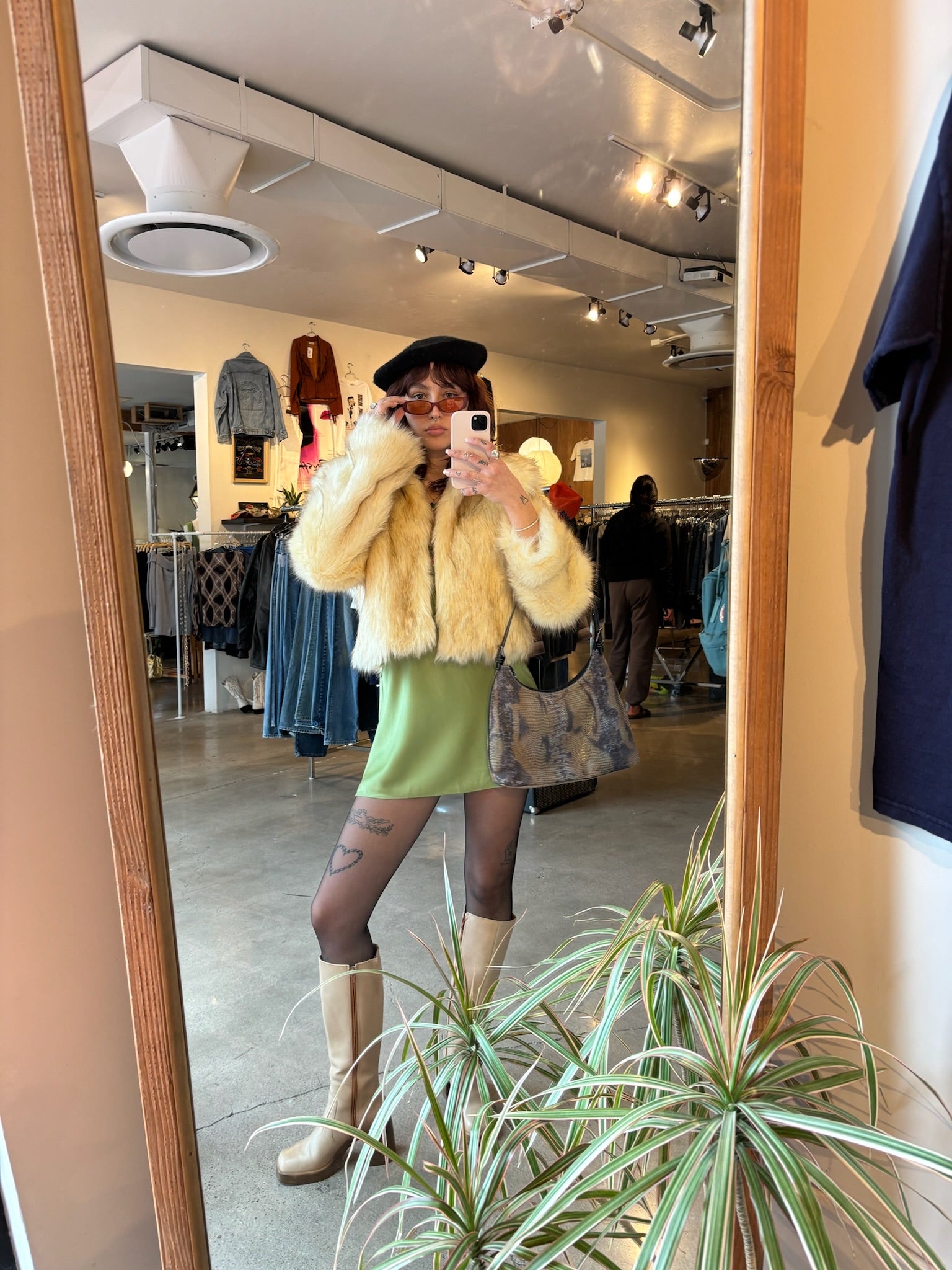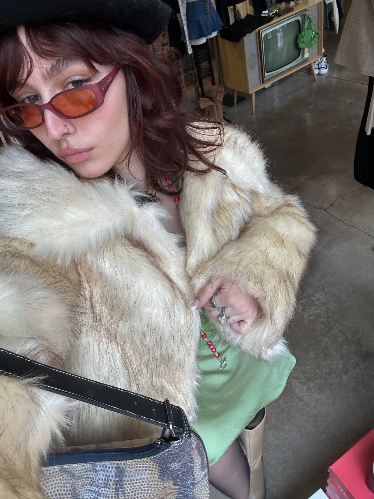 An insanely cool folded collar chunky crop faux fur jacket to complete any going out look. With neutral coloring and a soft touch, this cozy coat goes with everything so you just can’t miss.