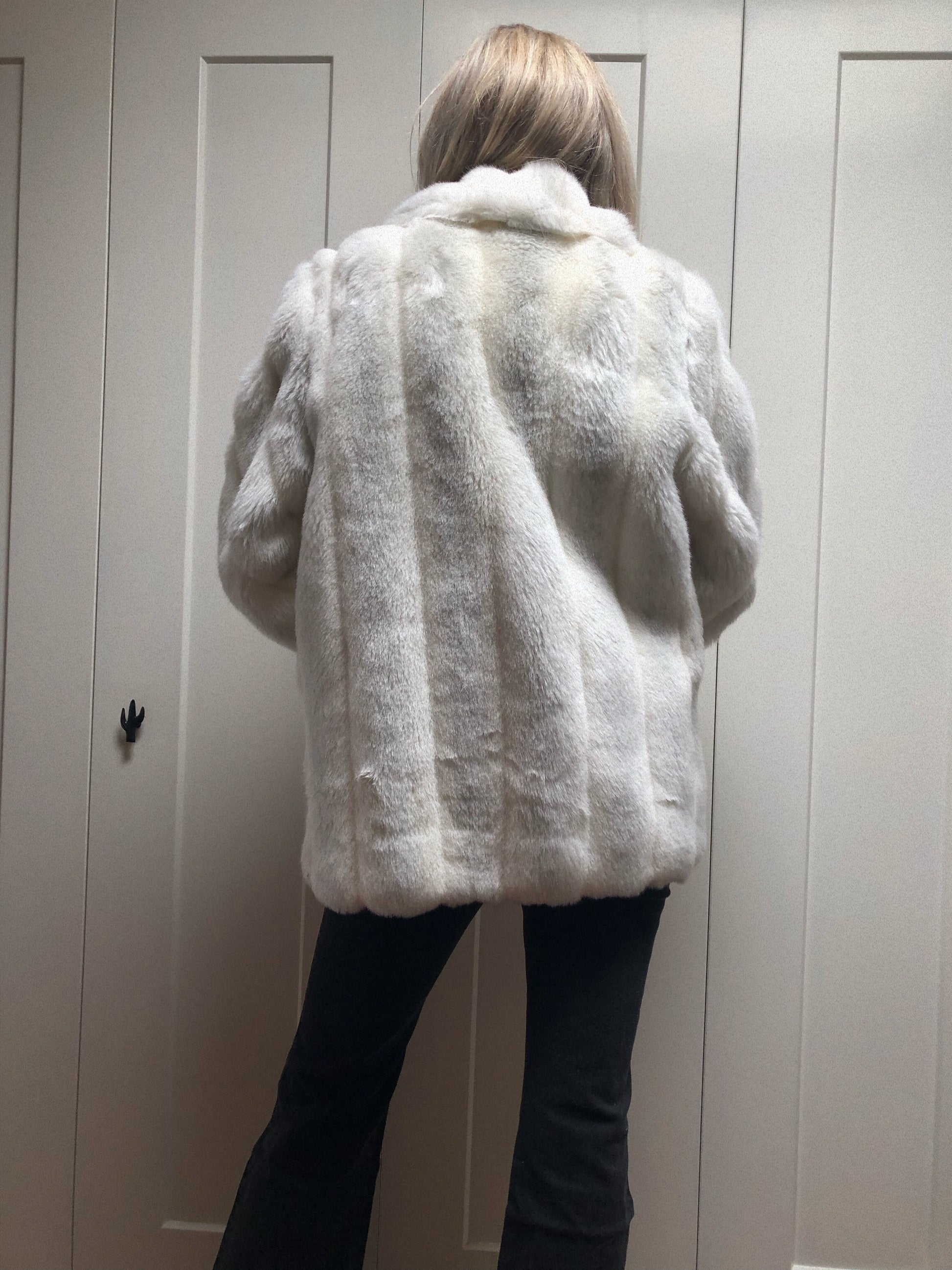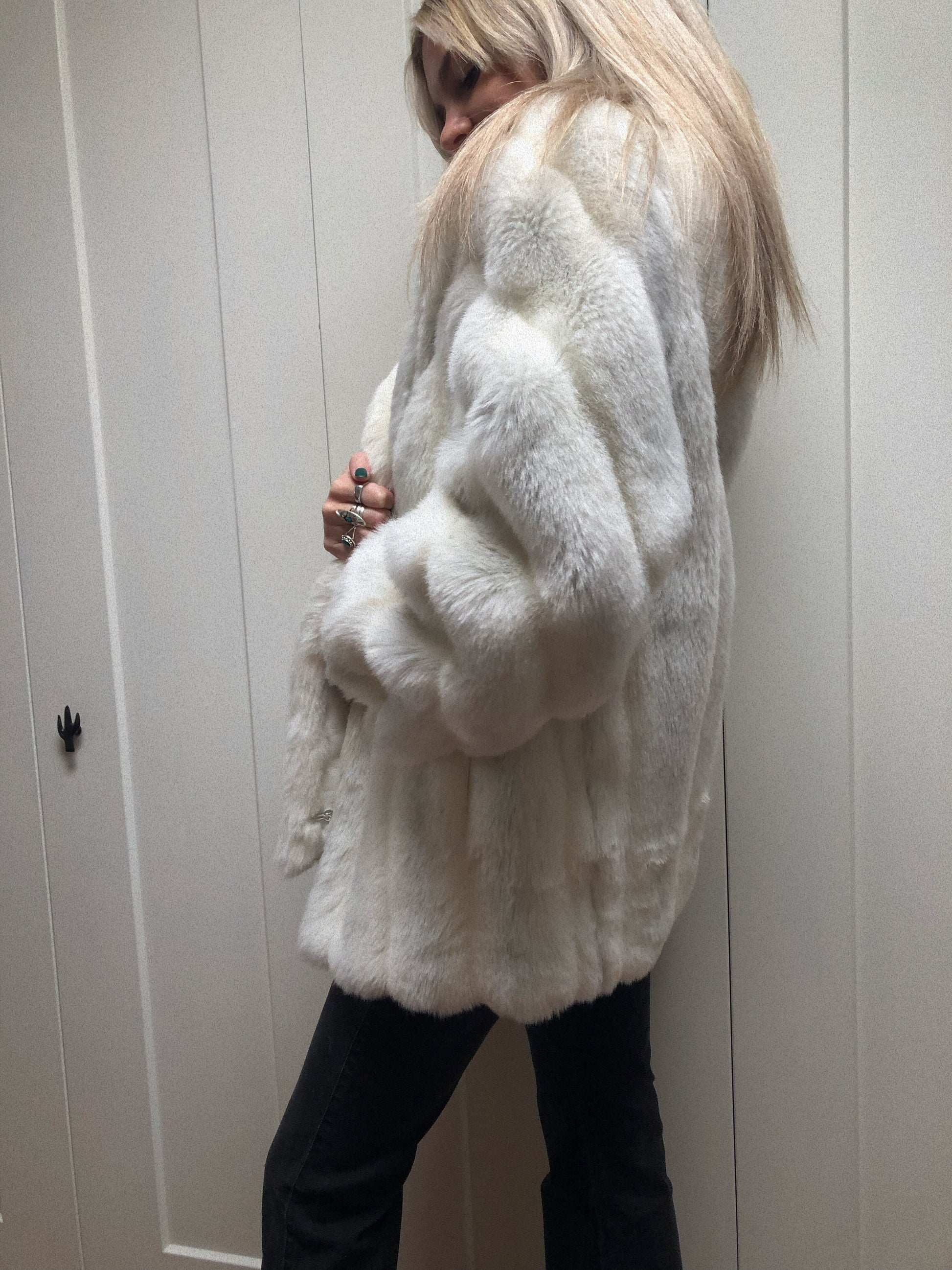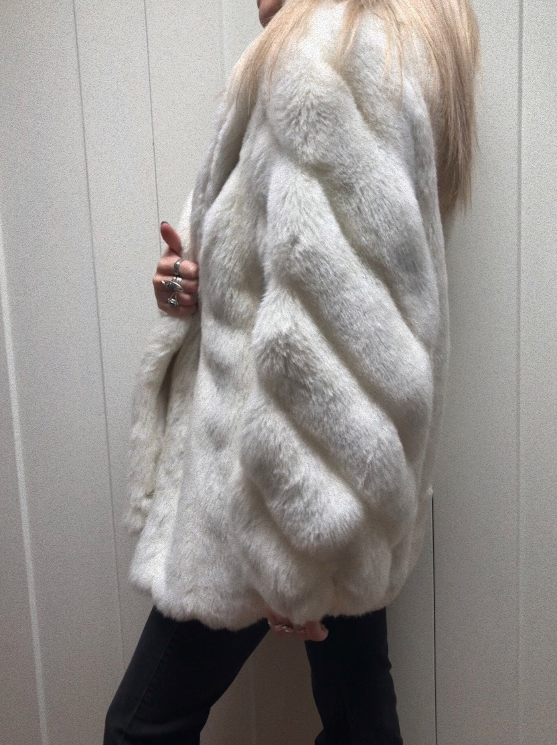 The most amazing white faux fur coat... lightly peppered with hints of grey throughout