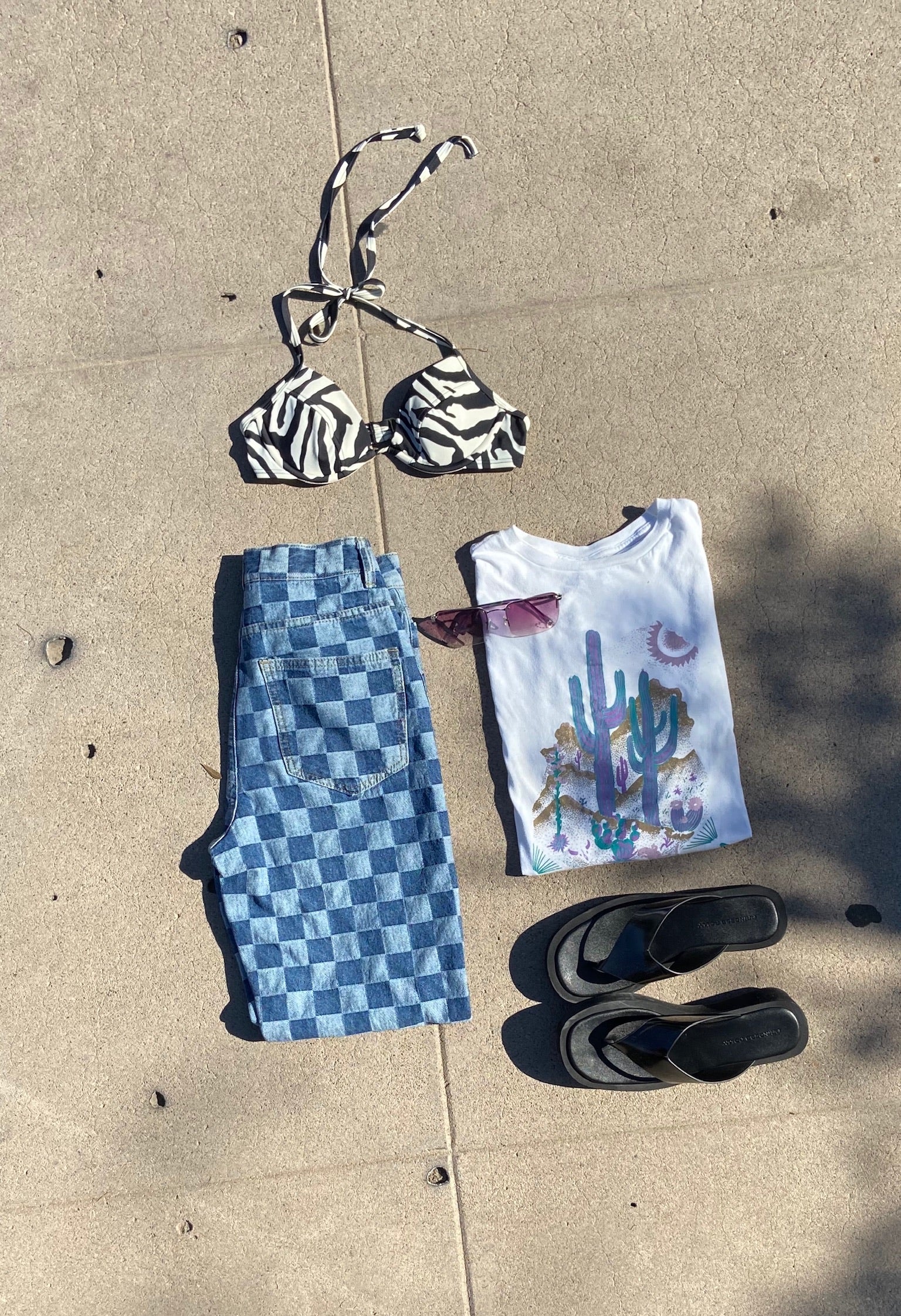 Rectangular faded frameless dead stock vintage sunglasses with silver wire arms.