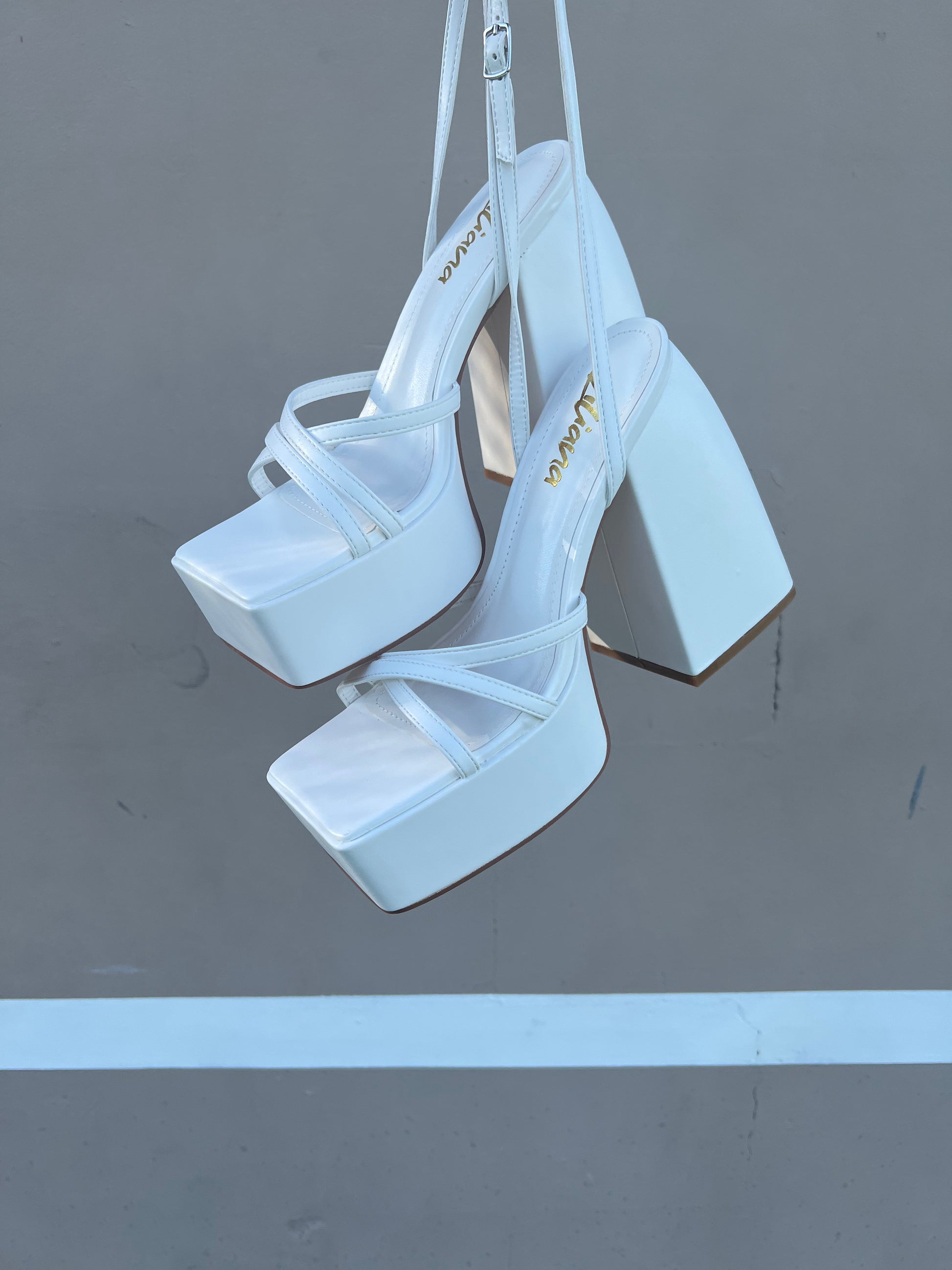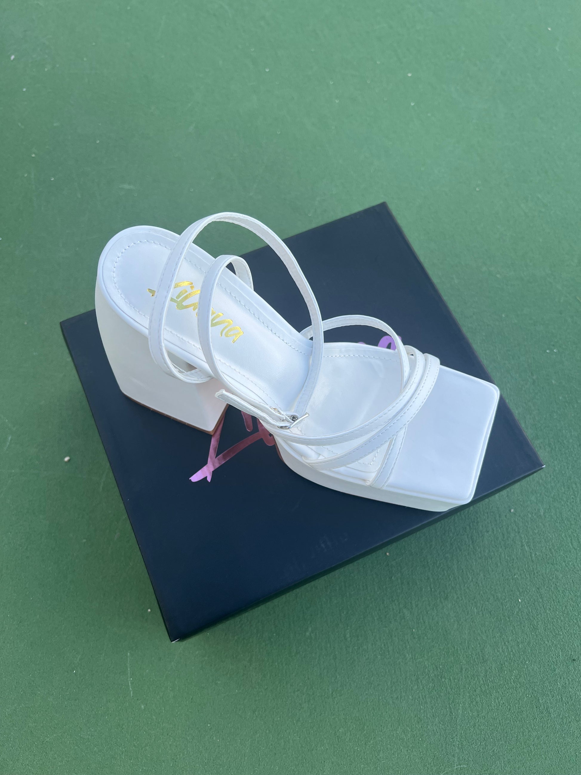 Insane platform chunky curved block heel sandals with square toe and ankle strap detail. These are 1000% necessary for summer.