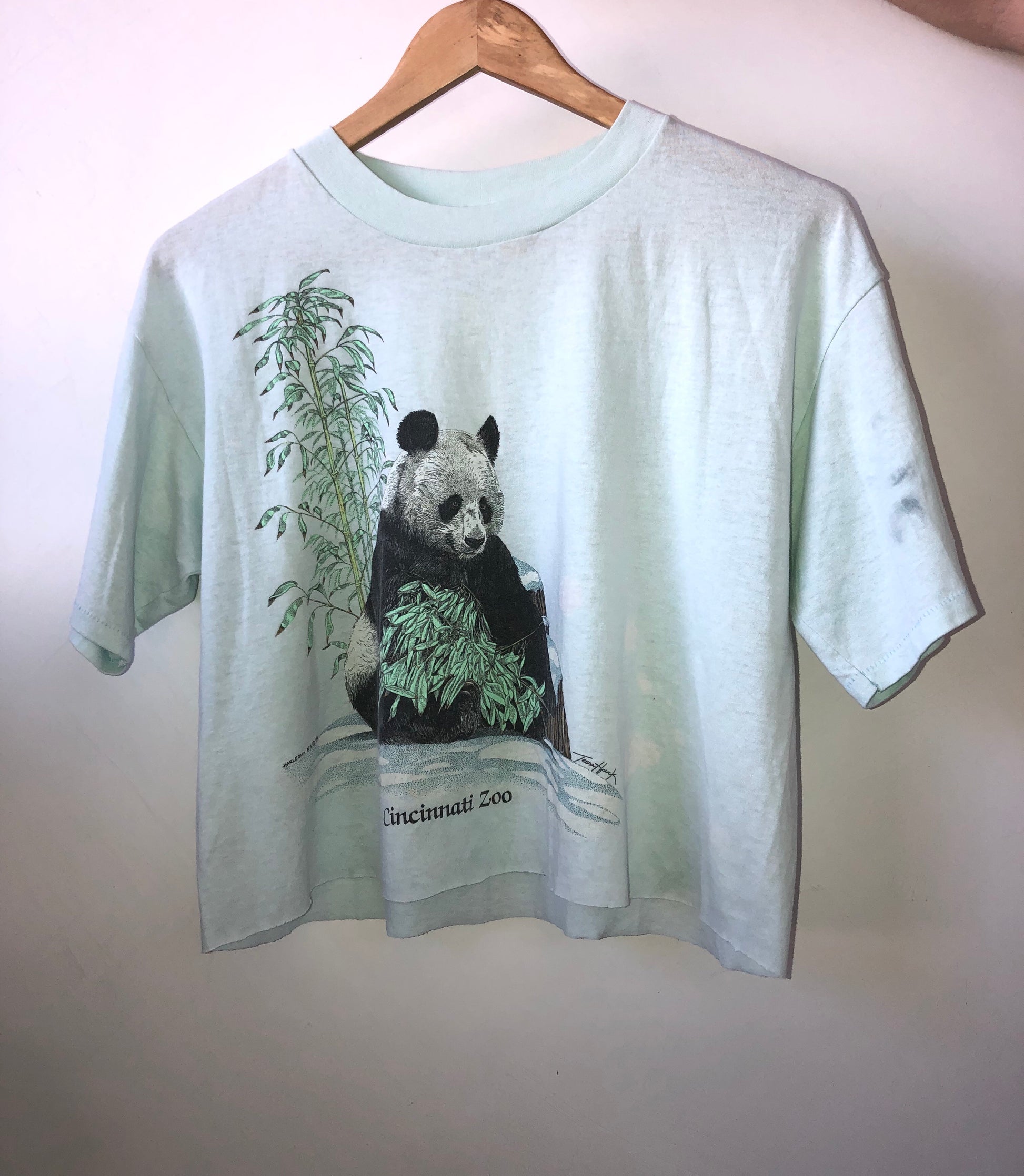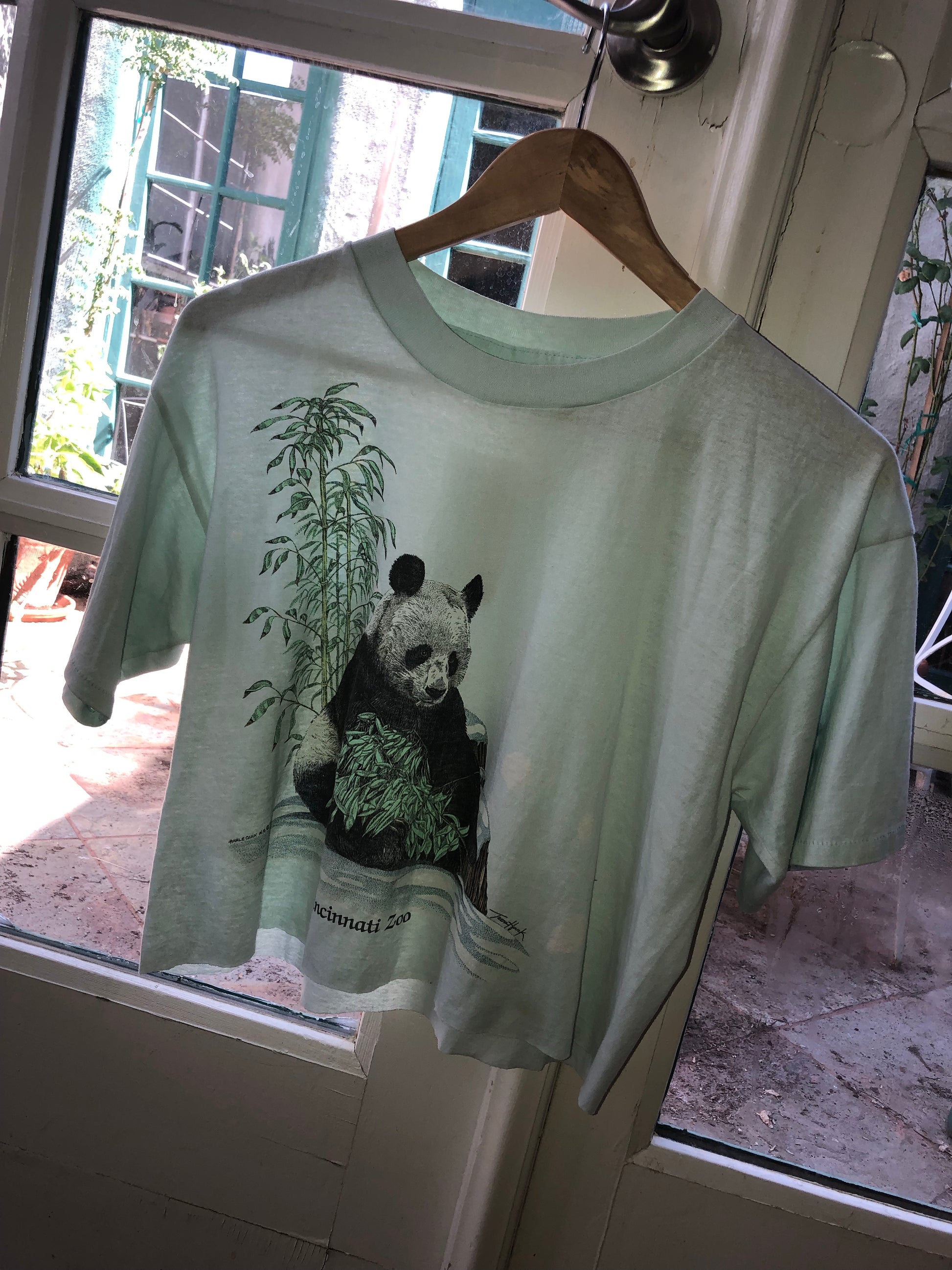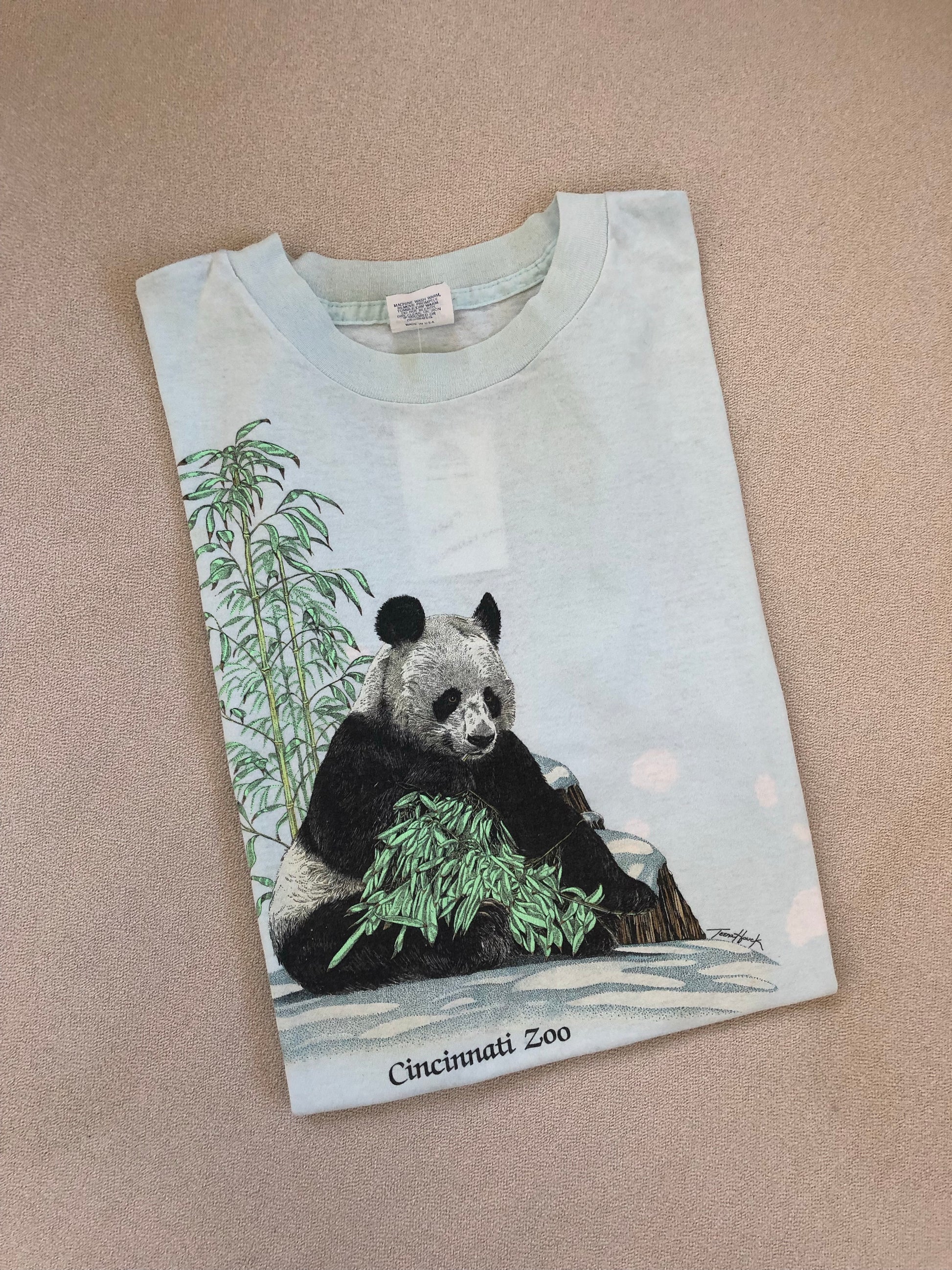 Vintage paper thin light blue Cincinnati Zoo Panda print t-shirt.