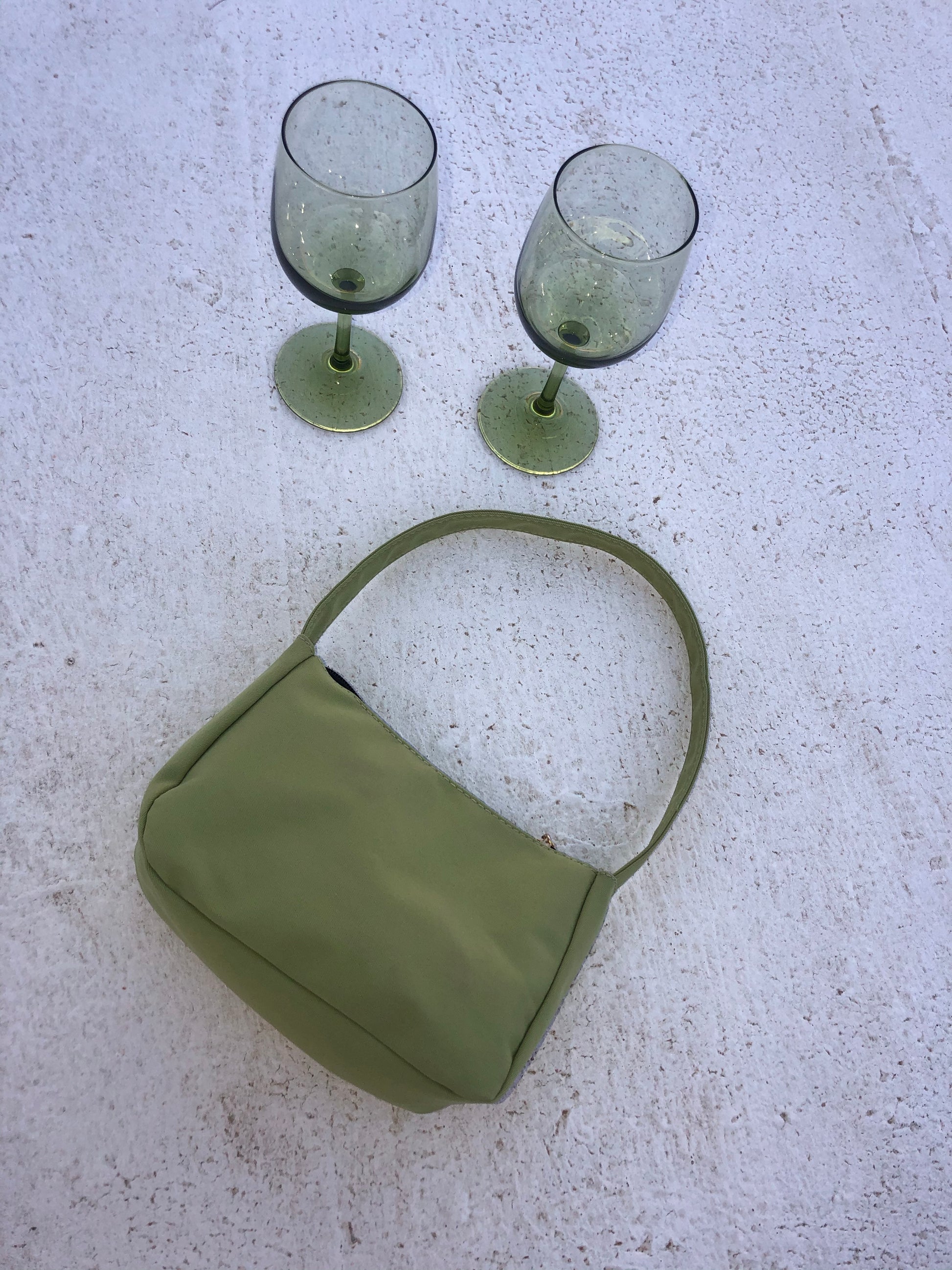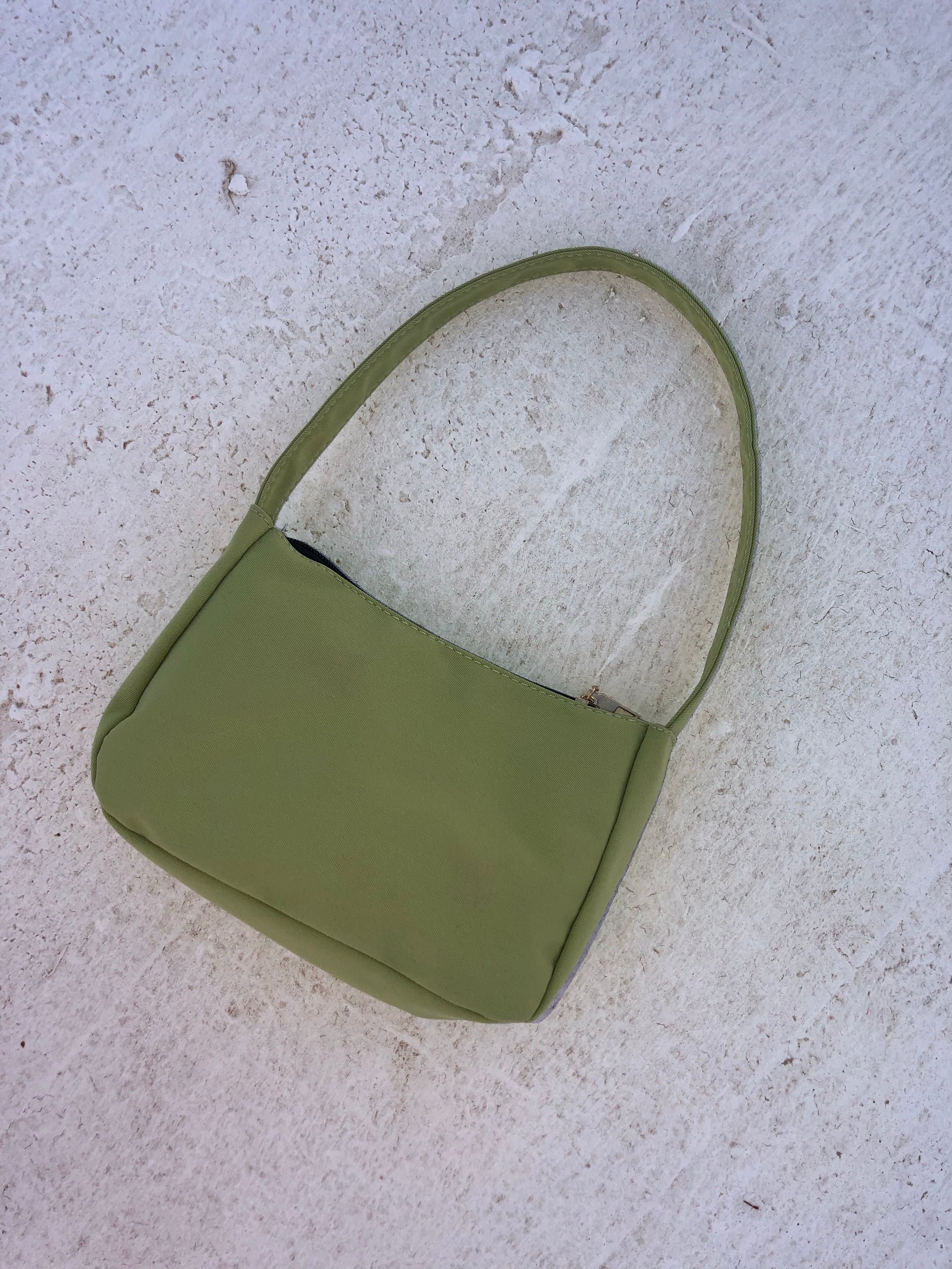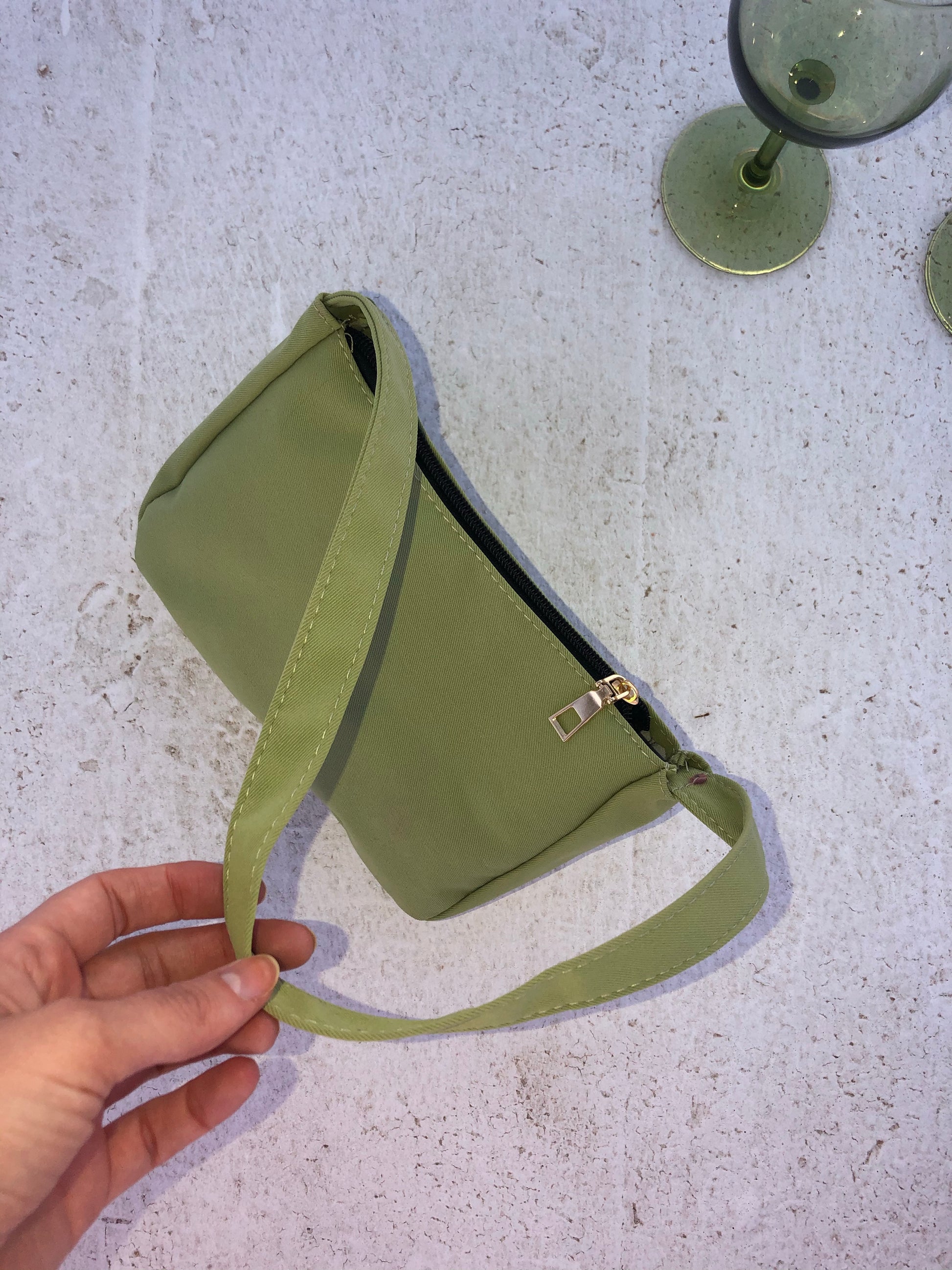Small and simple green canvas purse.