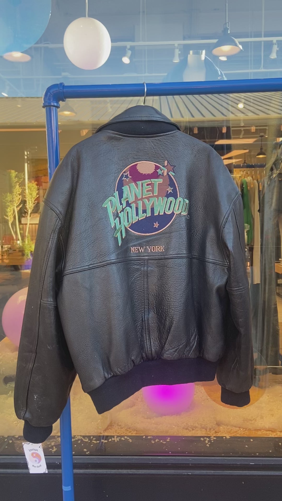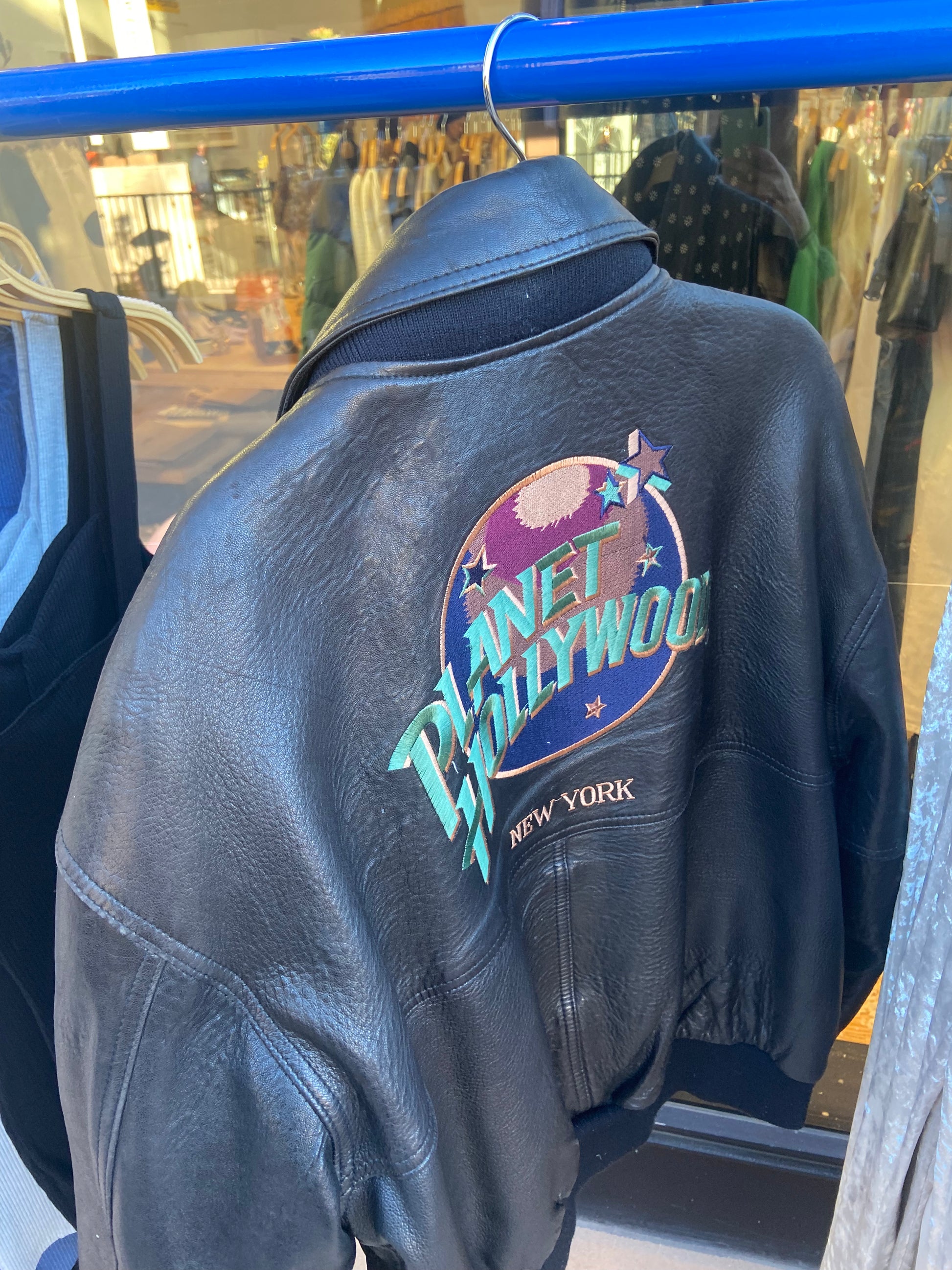 Amazing vintage New York Planet Hollywood leather bomber jacket with embroidery!