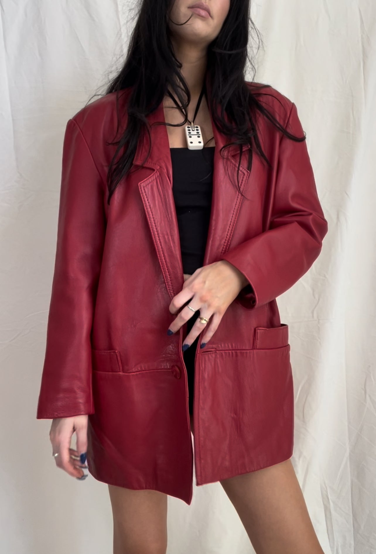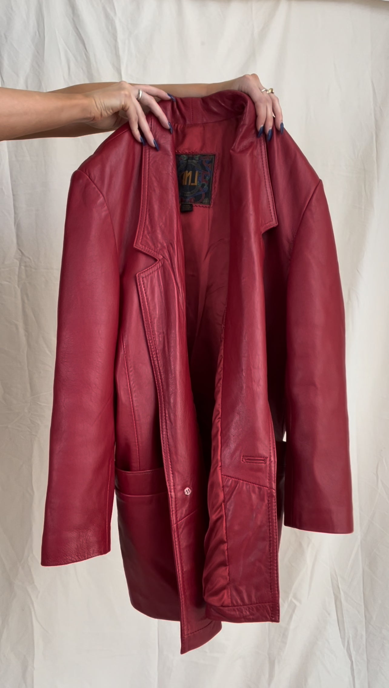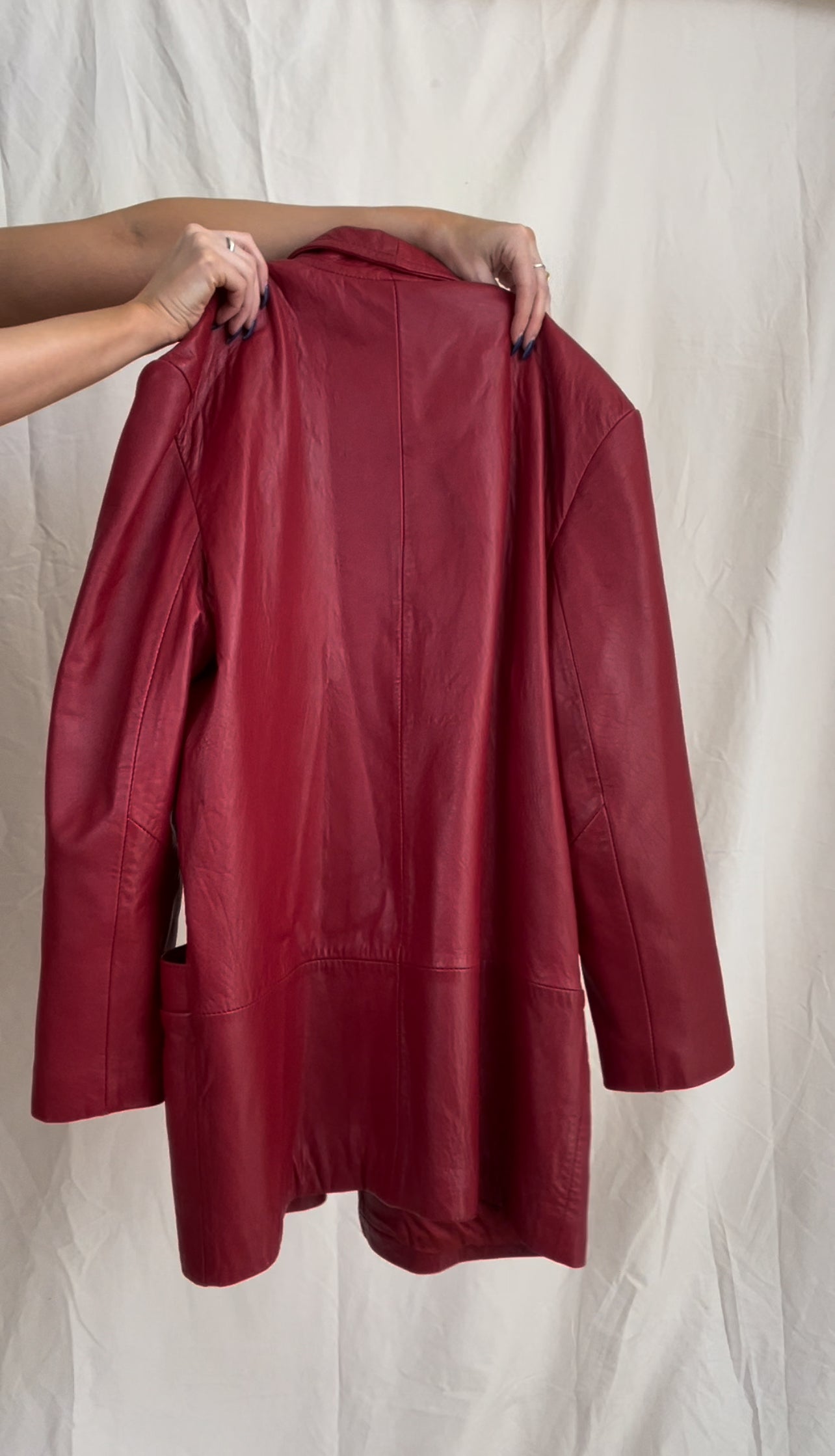 Amazing genuine leather oversized red leather blazer coat with 100% acetate twill lining and exterior pockets