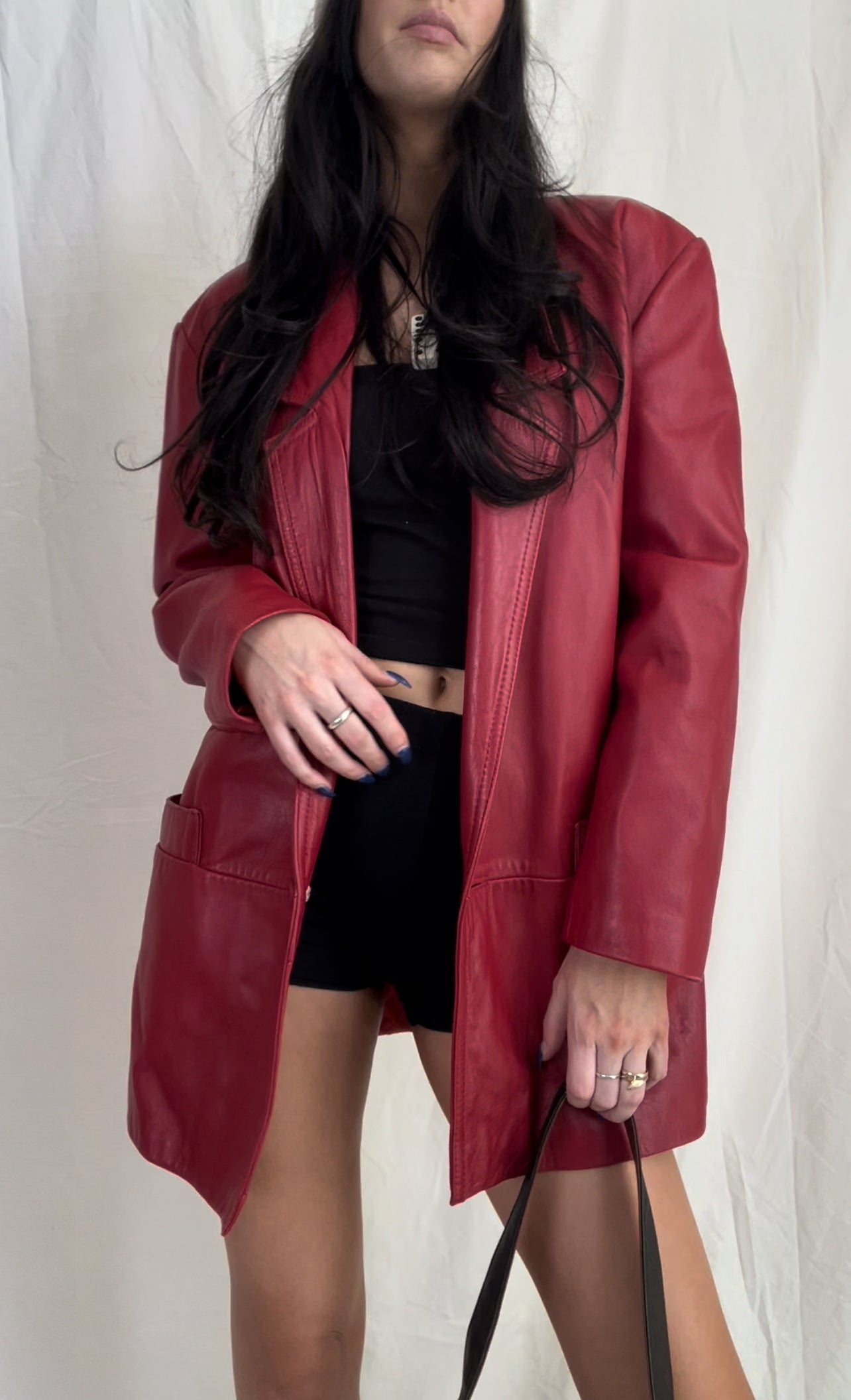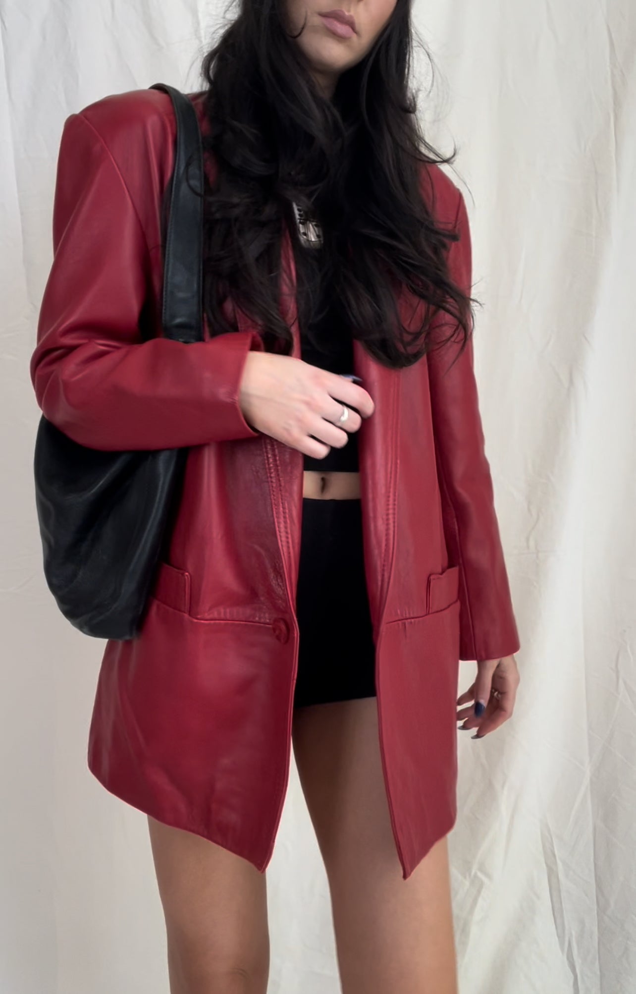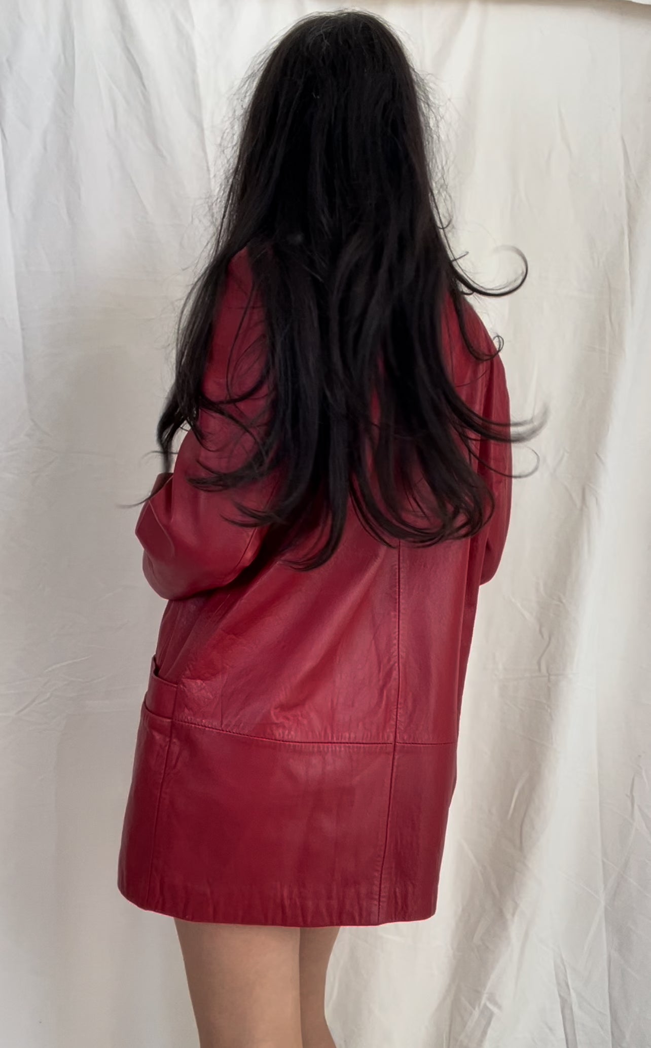 Amazing genuine leather oversized red leather blazer coat with 100% acetate twill lining and exterior pockets