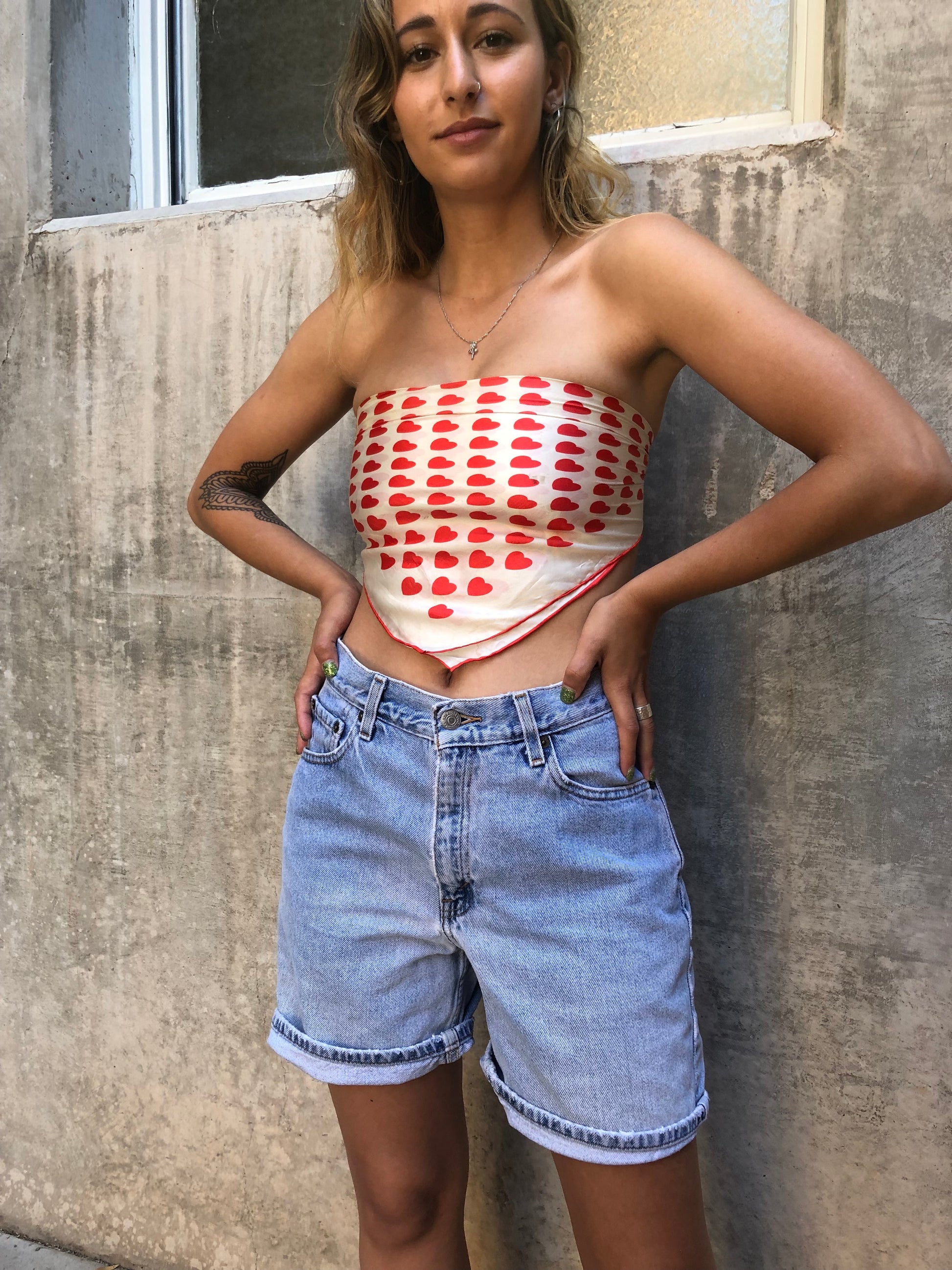 Rows of red hears on an ivory vintage scarf... tie as a top or roll into a hair scarf!