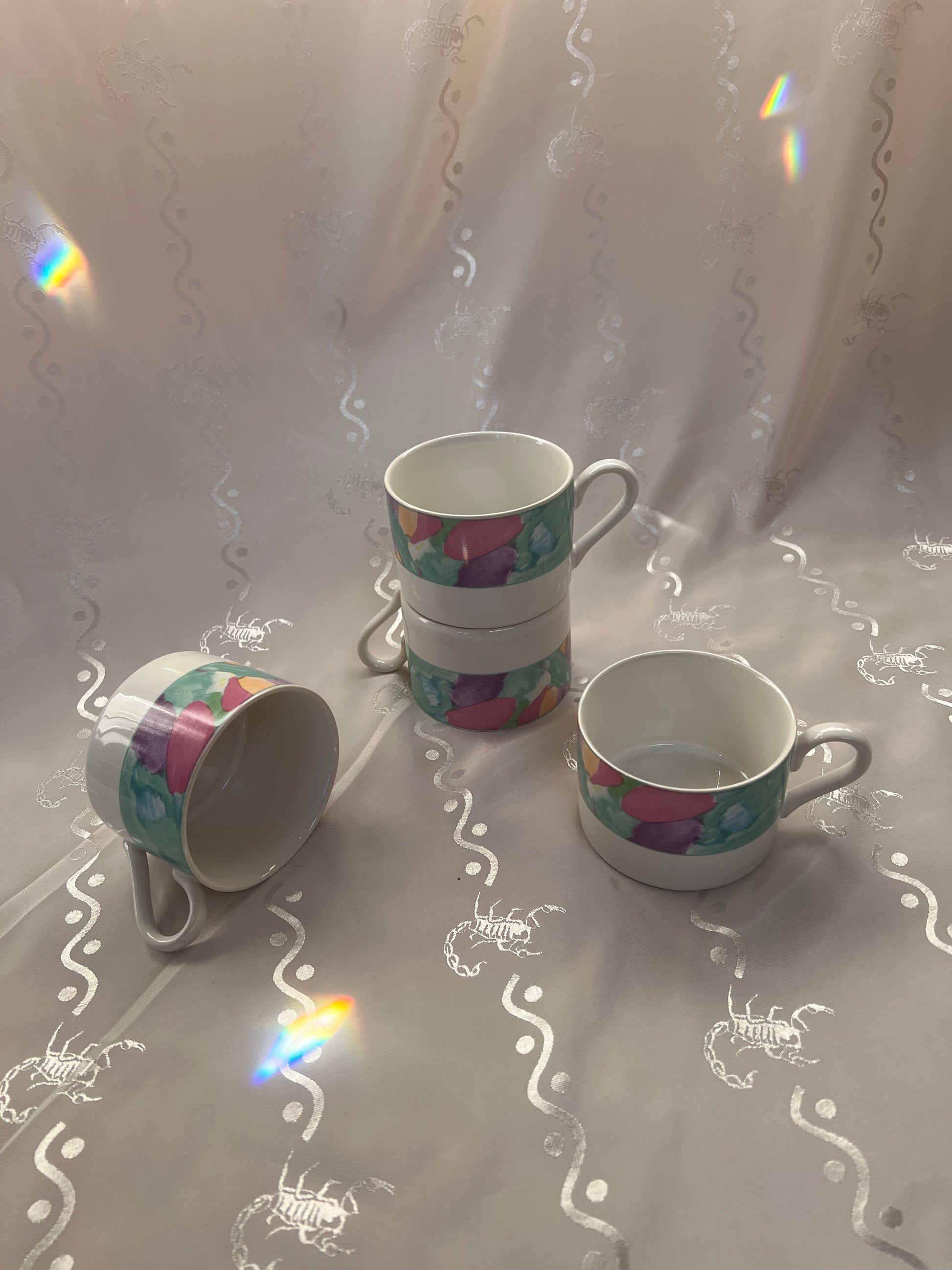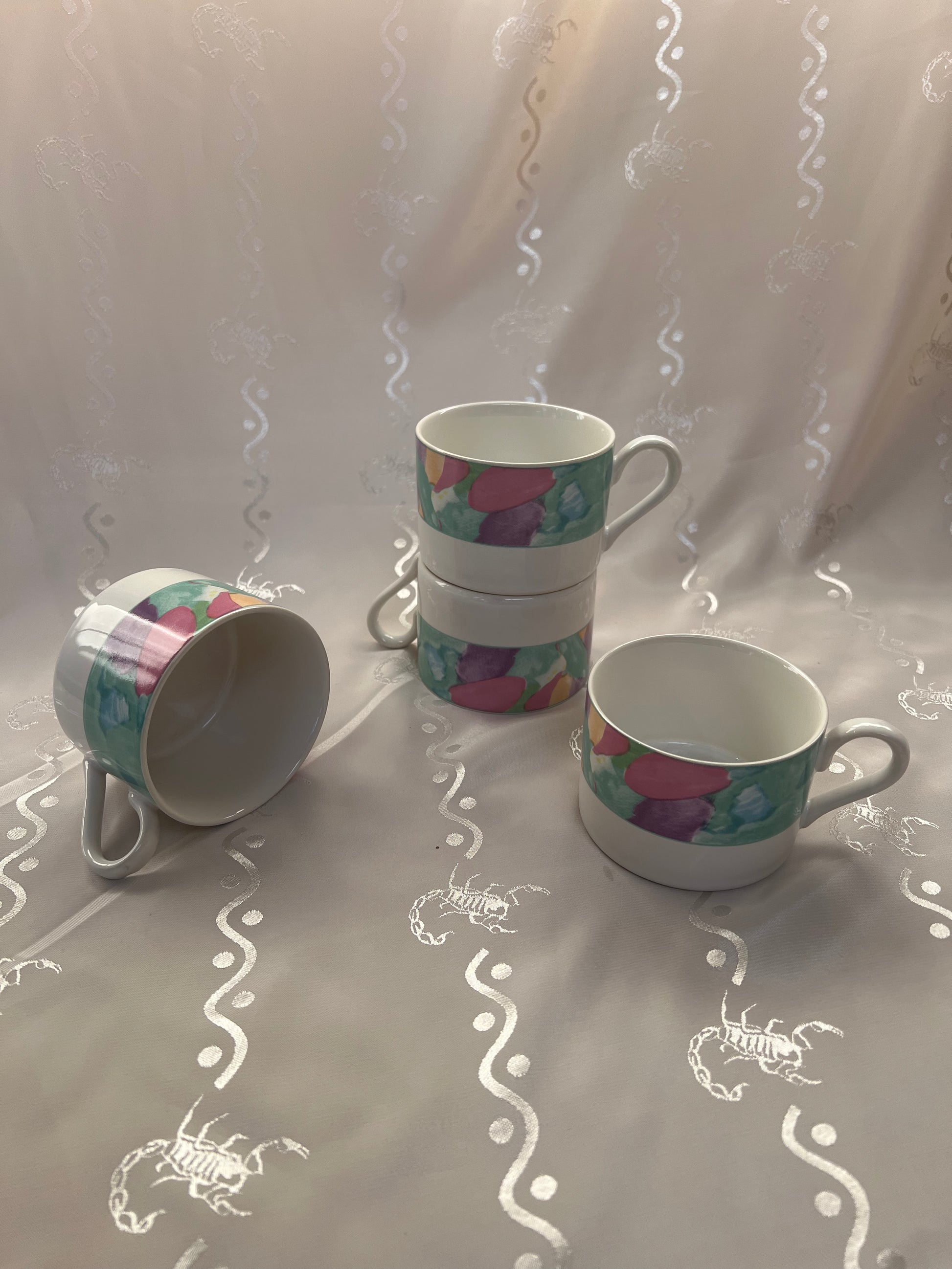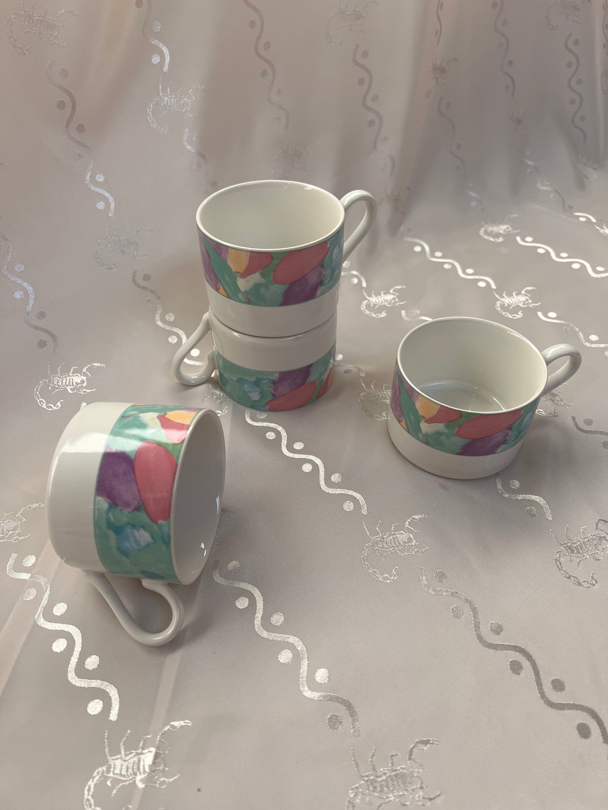 Set of 4 vintage 1980’s retro coffee cups with pastel colors