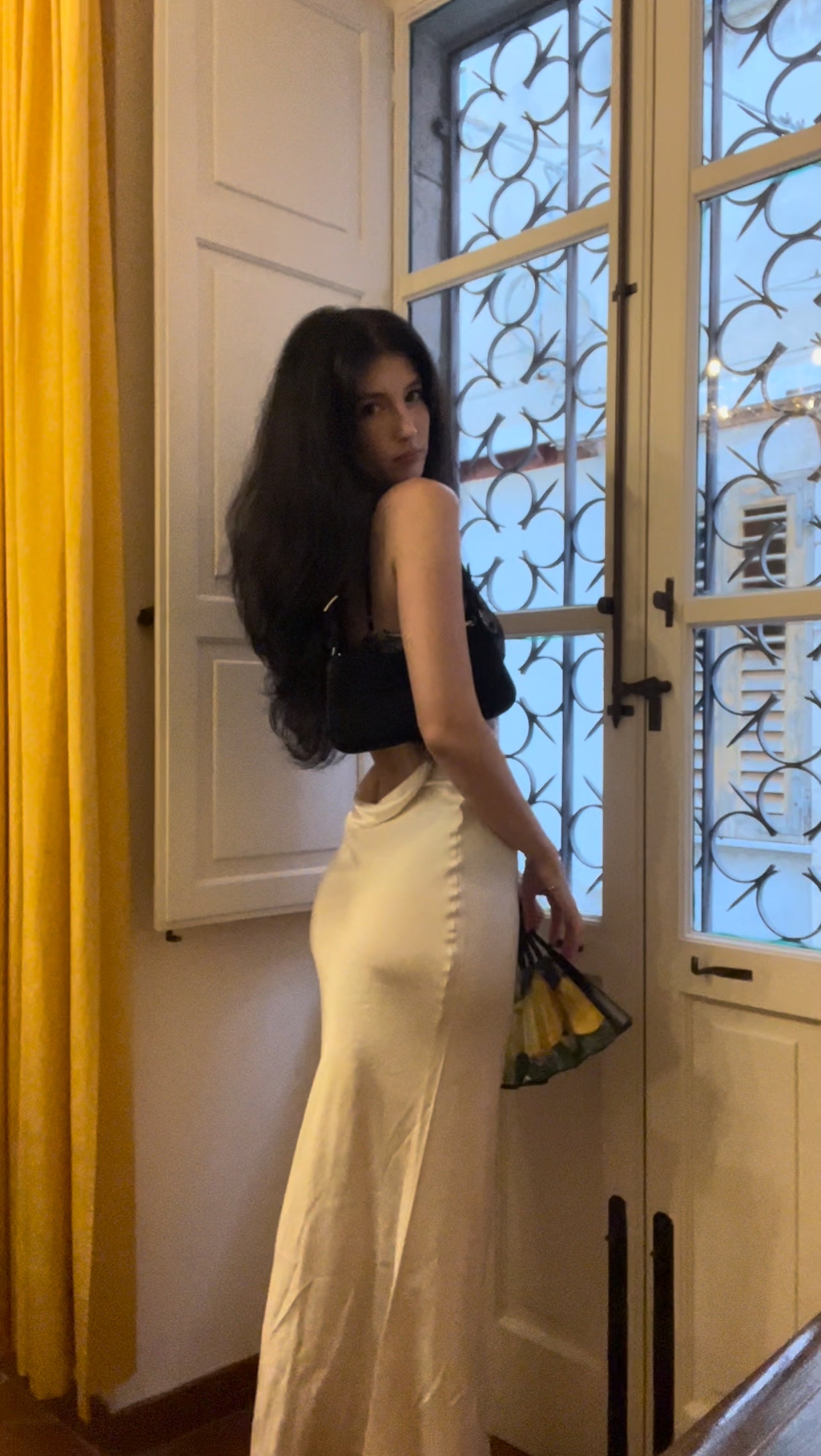 Incredibly beautiful cream satin maxi, with black lace detailing, open back with a bra clasp to allow for more support.