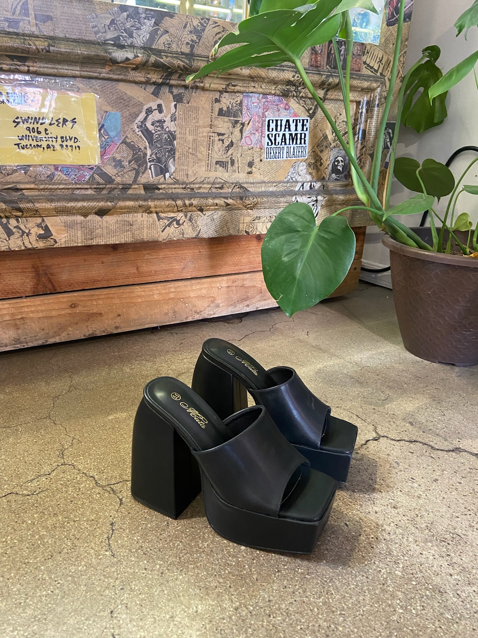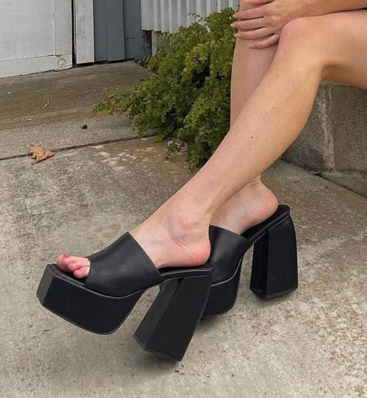 These faux leather sandals feature a square toe and chunky curved block heel. Super cute with pants or dresses!!