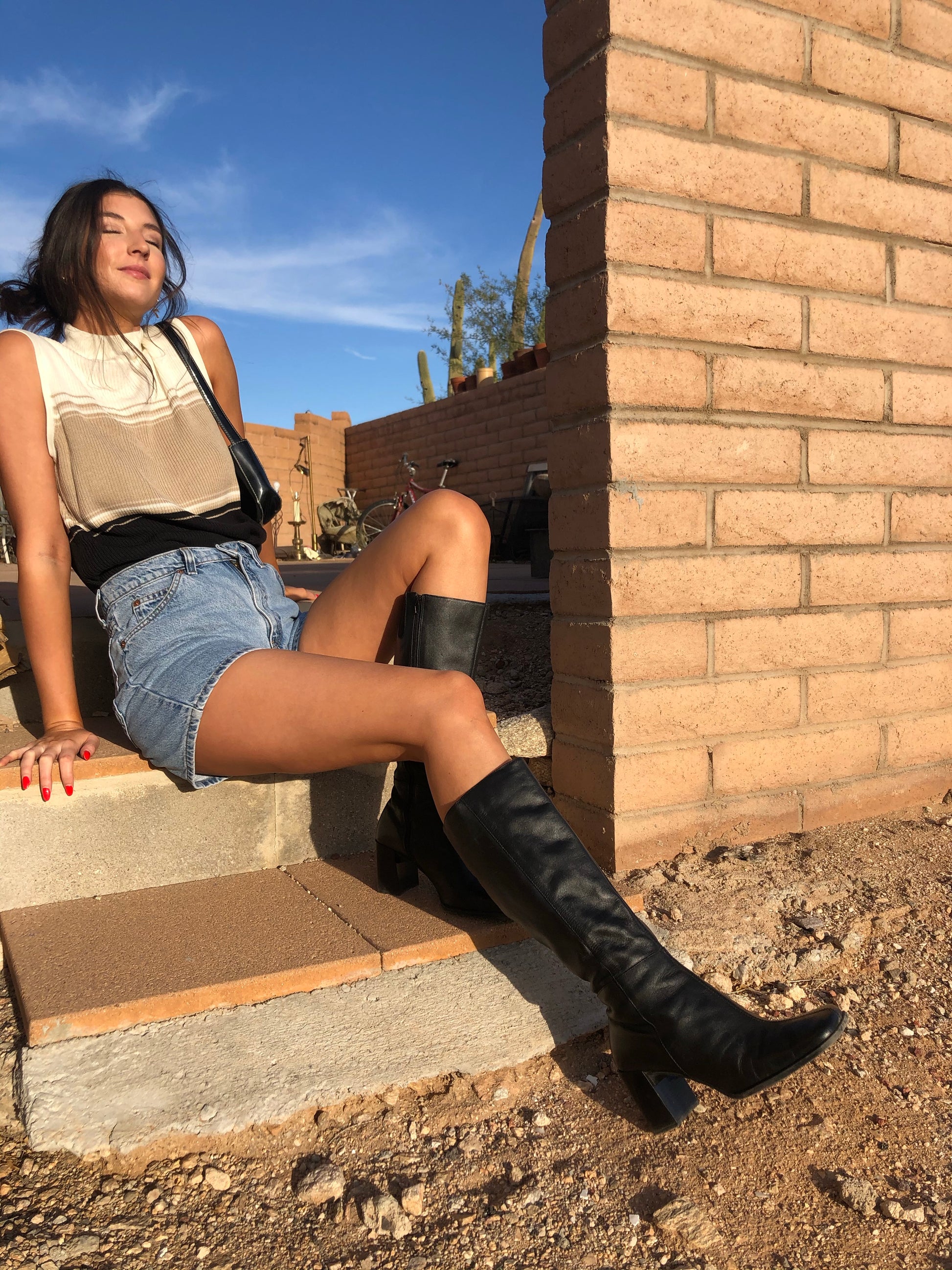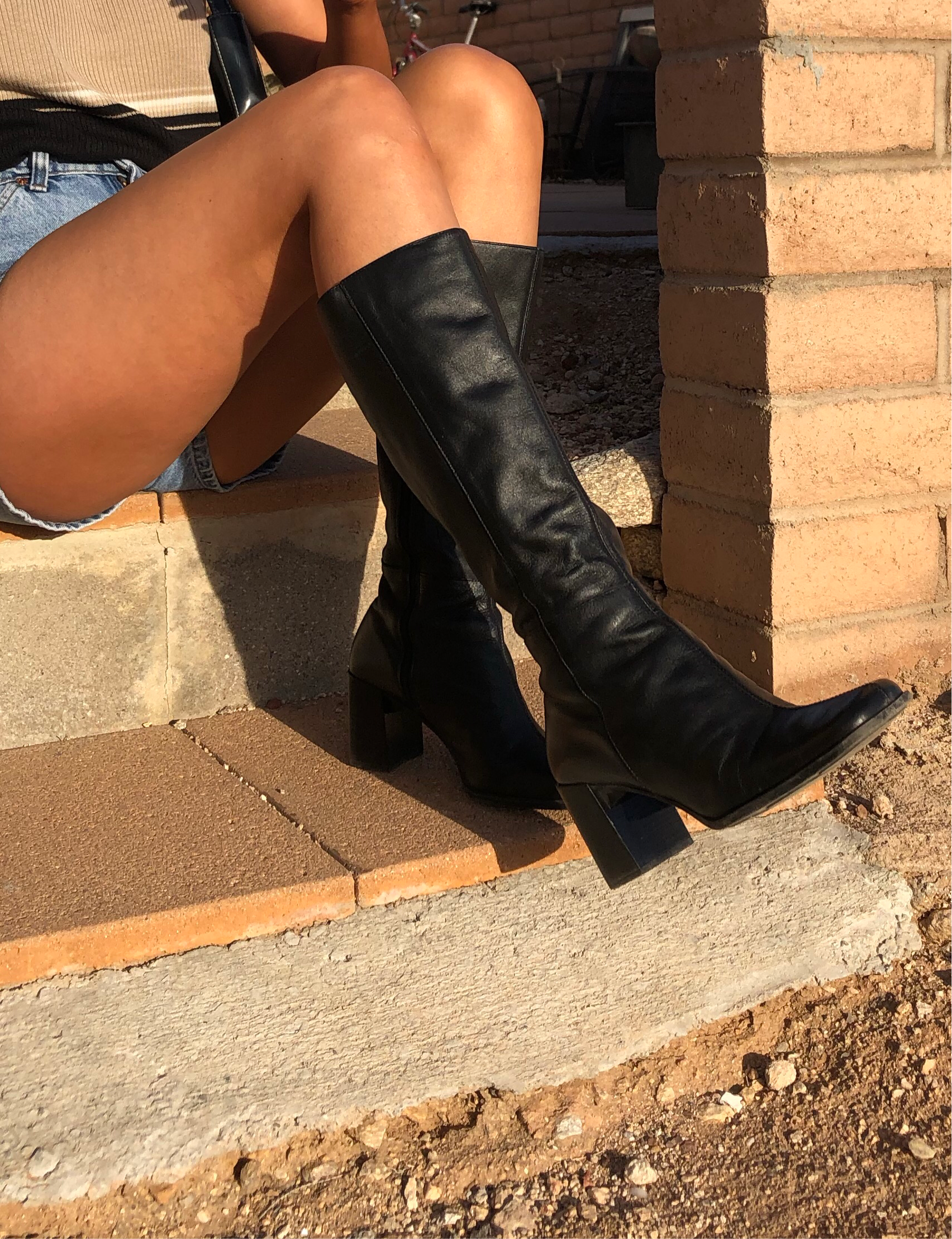 Vintage leather 90’s chunky square toe perfect black boots with zipper closure
