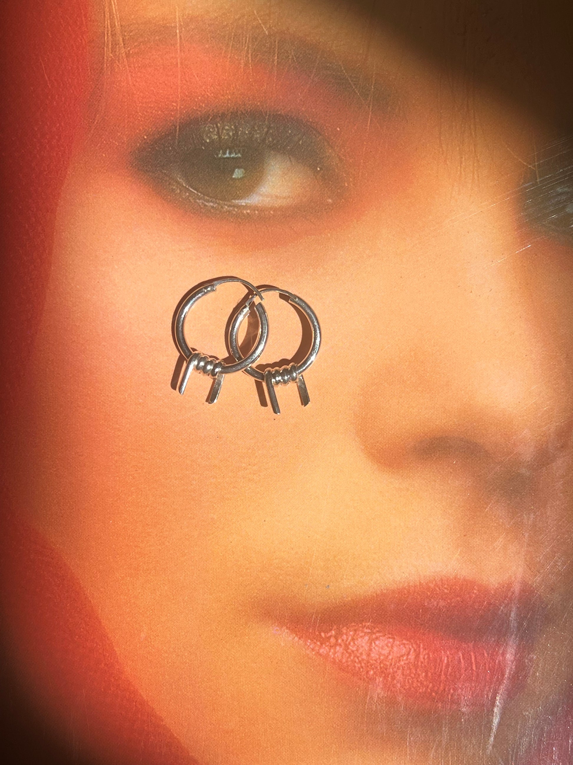 Sterling Barbed Wire Mini Hoops