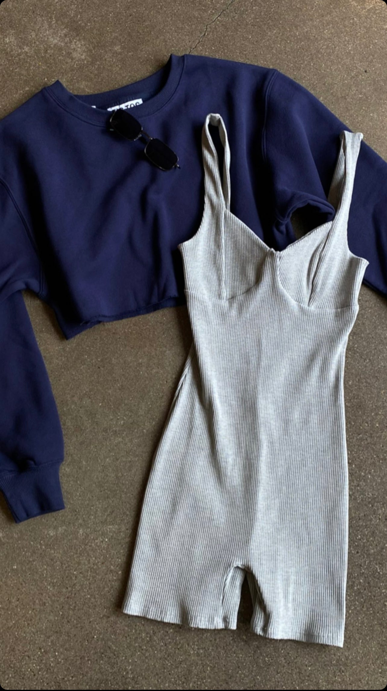 Sleeveless thick and stretchy ribbed onesie romper that snatches the waist and the legs. Top has flattering cup detail.