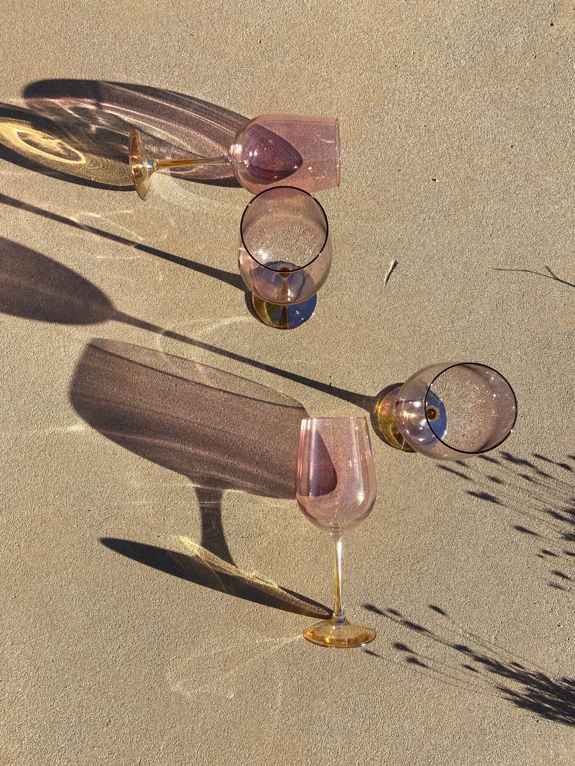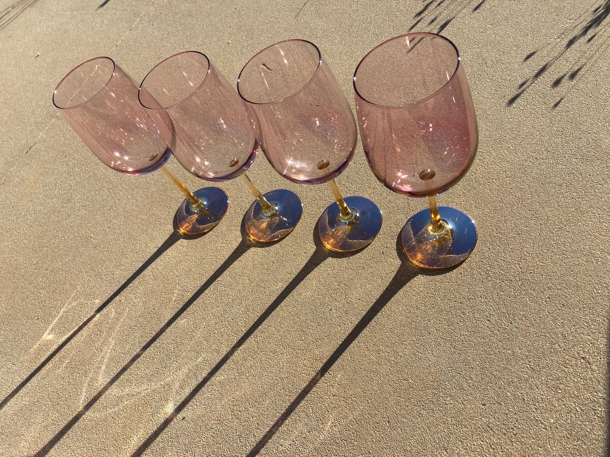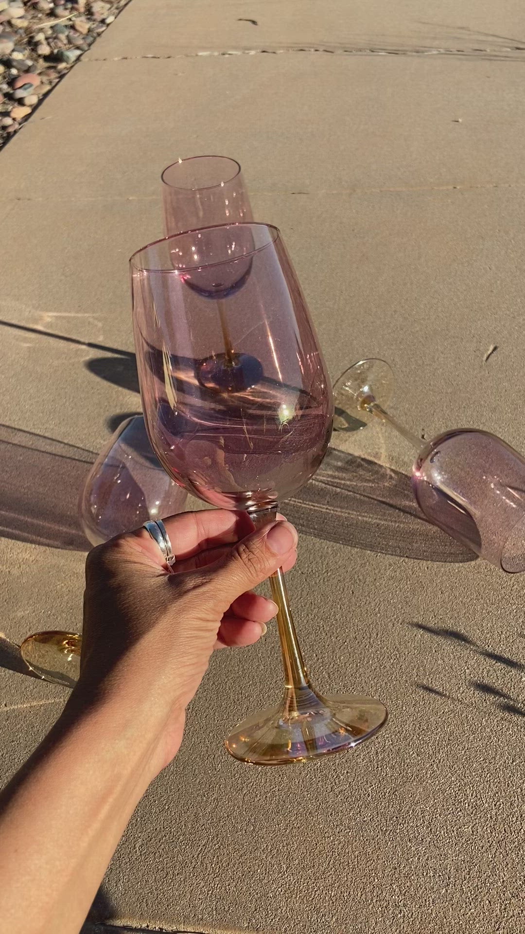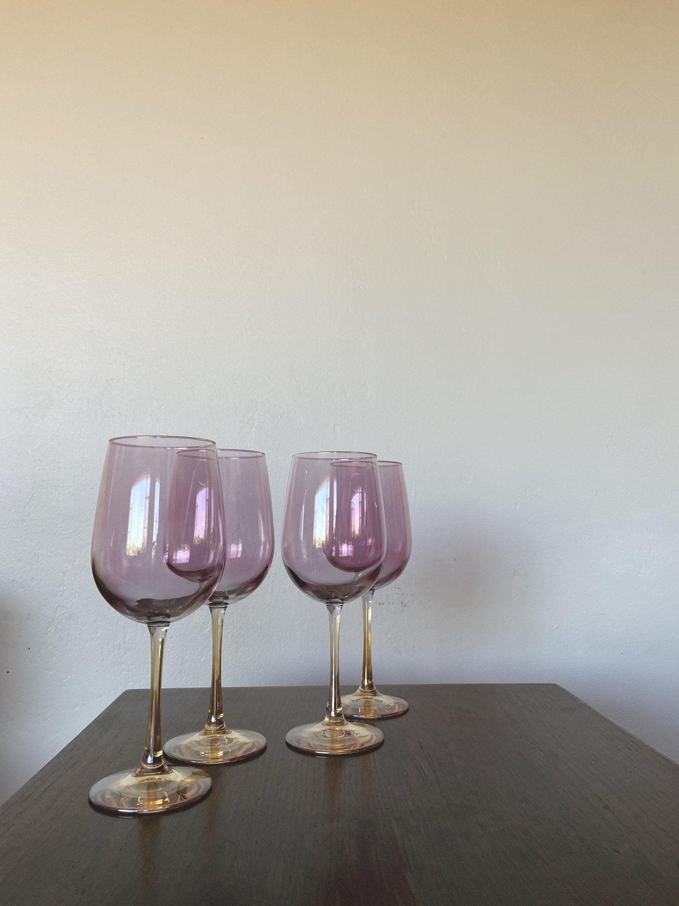 Mint condition vintage set of 4 amethyst & amber tone wine glasses.