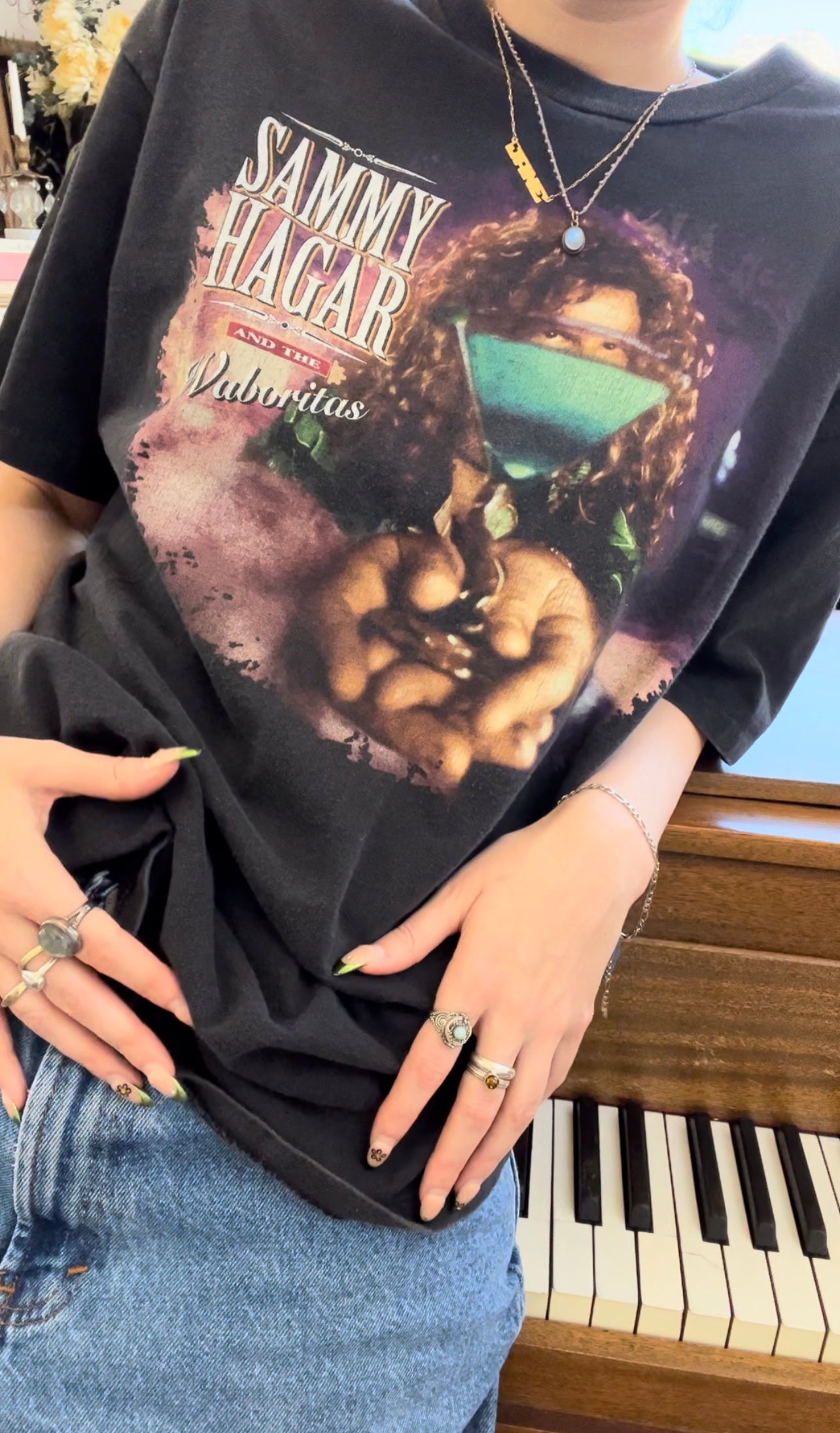RARE! Vintage black cotton Sammy Hagar wavy martini glass graphic tee