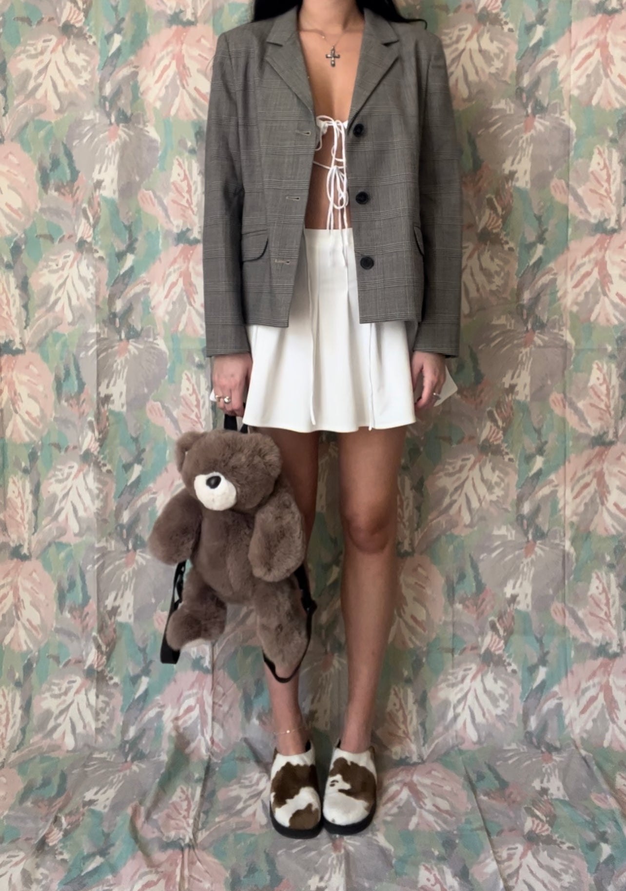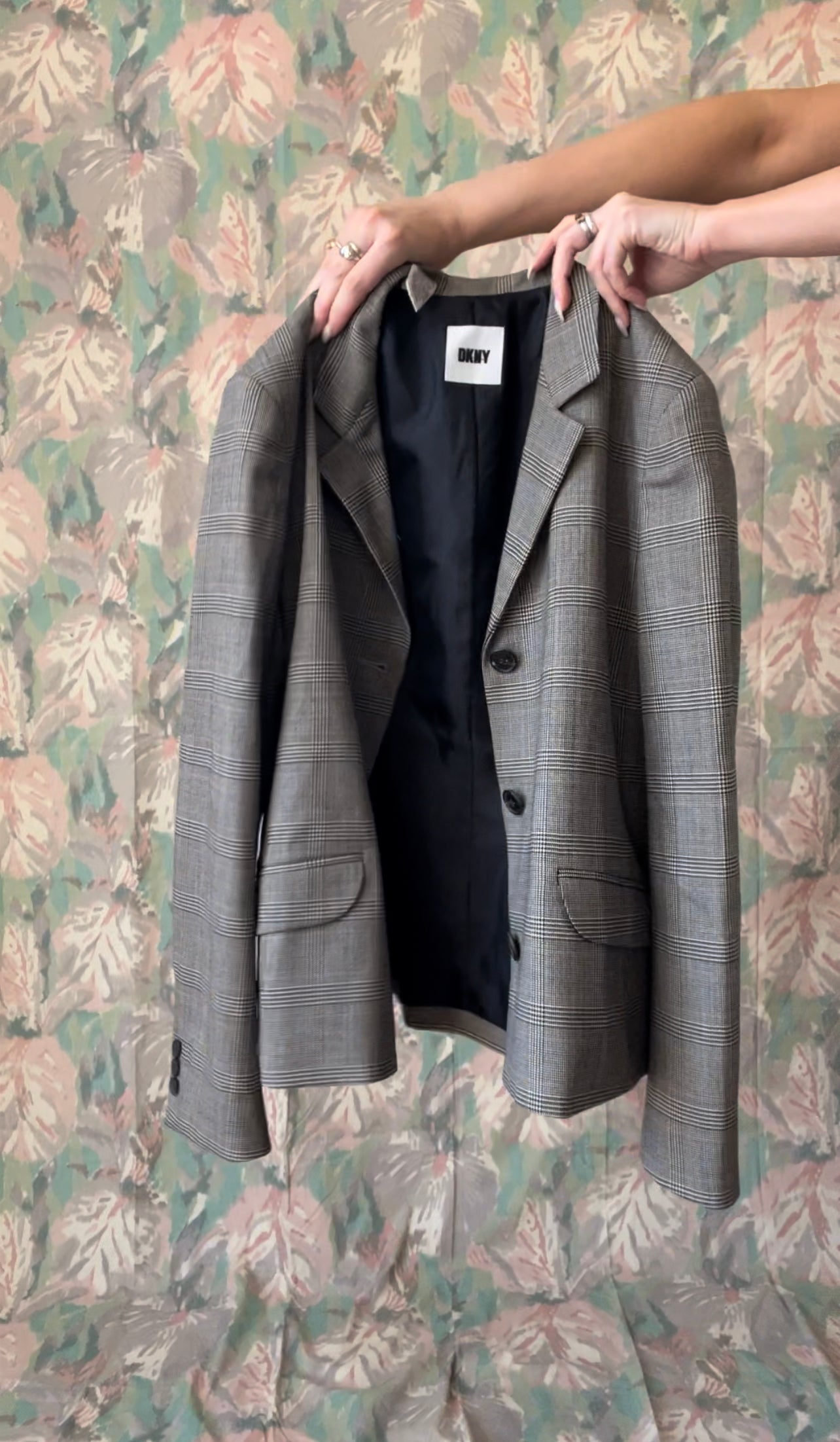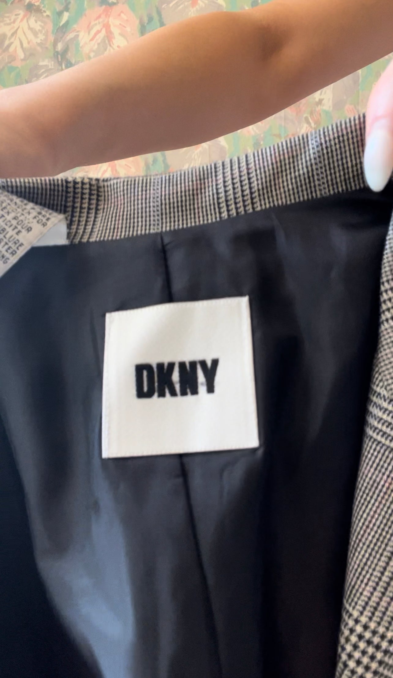 Cutest vintage grey plaid DKNY crop jacket with button closure