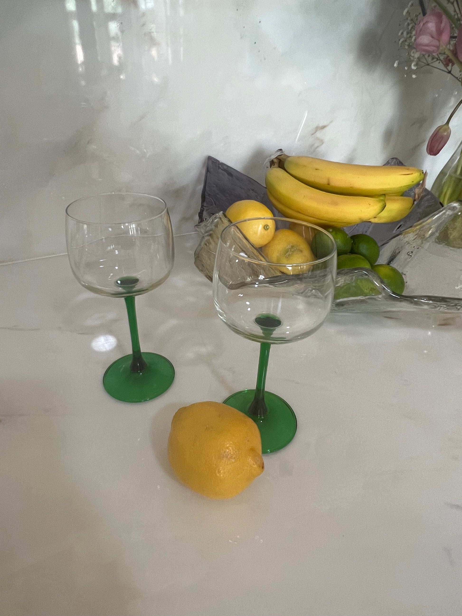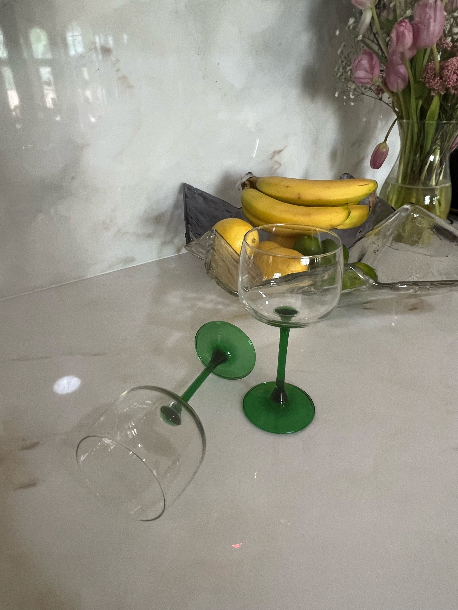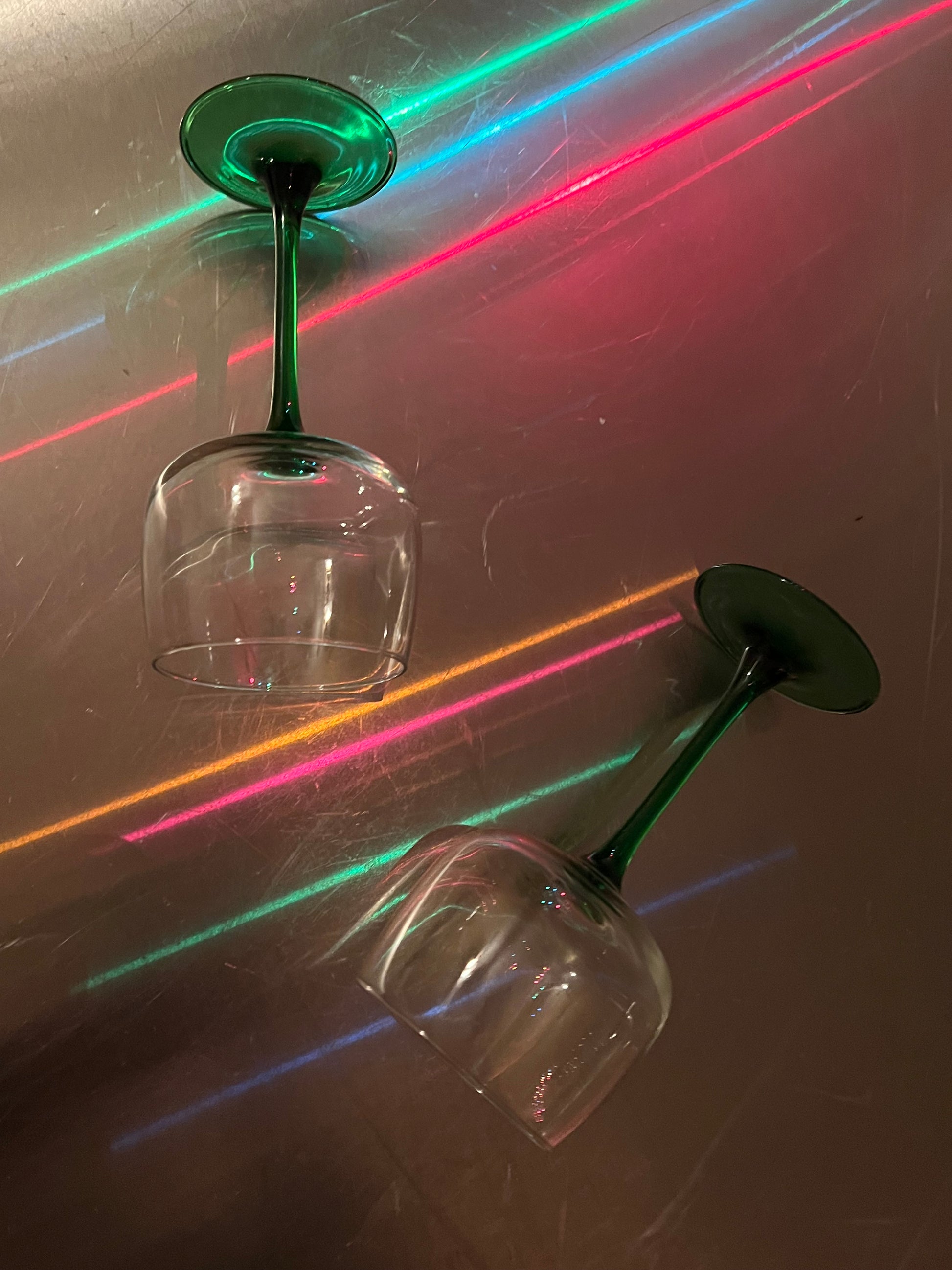 Our favorite part about these green stem wine glasses is that if you enjoy red wine in them, they look like roses 🌹Â