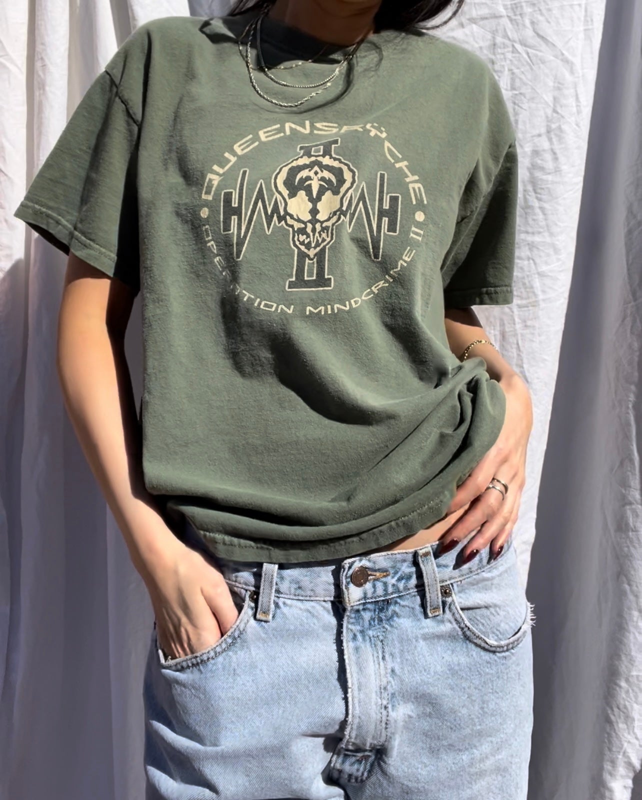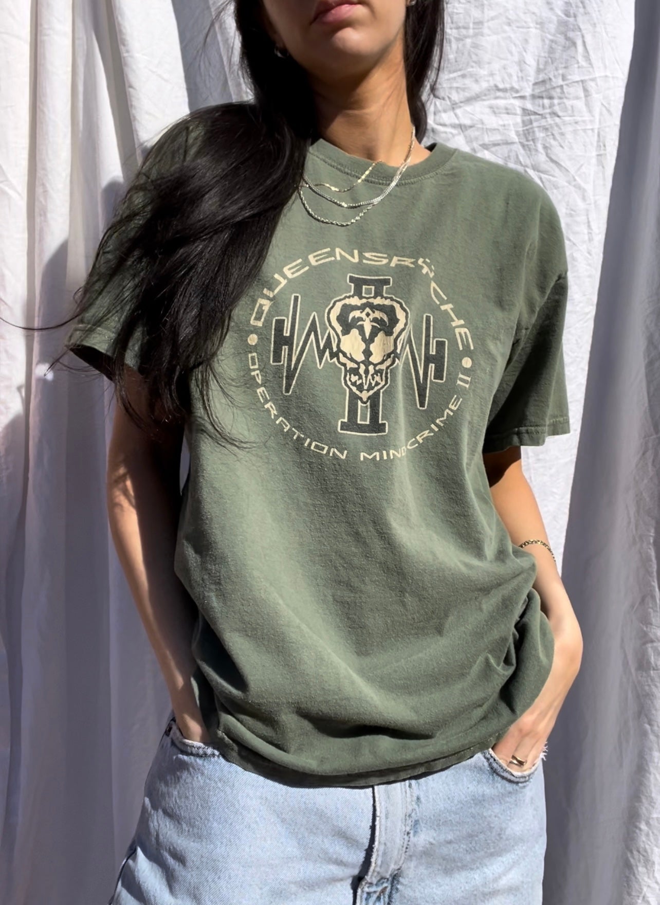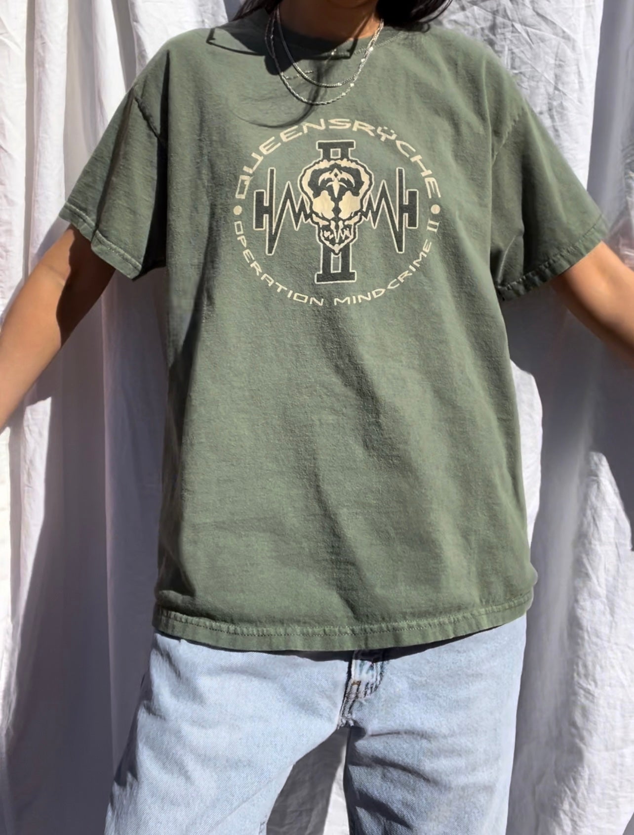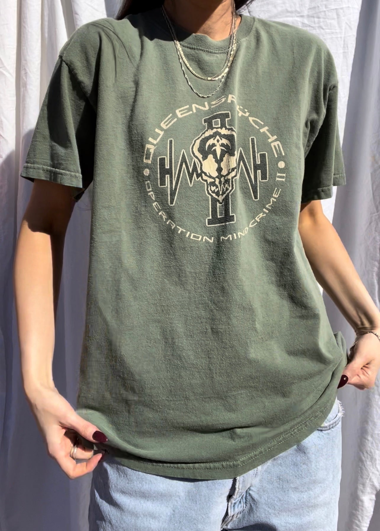 Vintage Queenryche Operation Mind Crime II printed tee on a Gildan Ultra tee