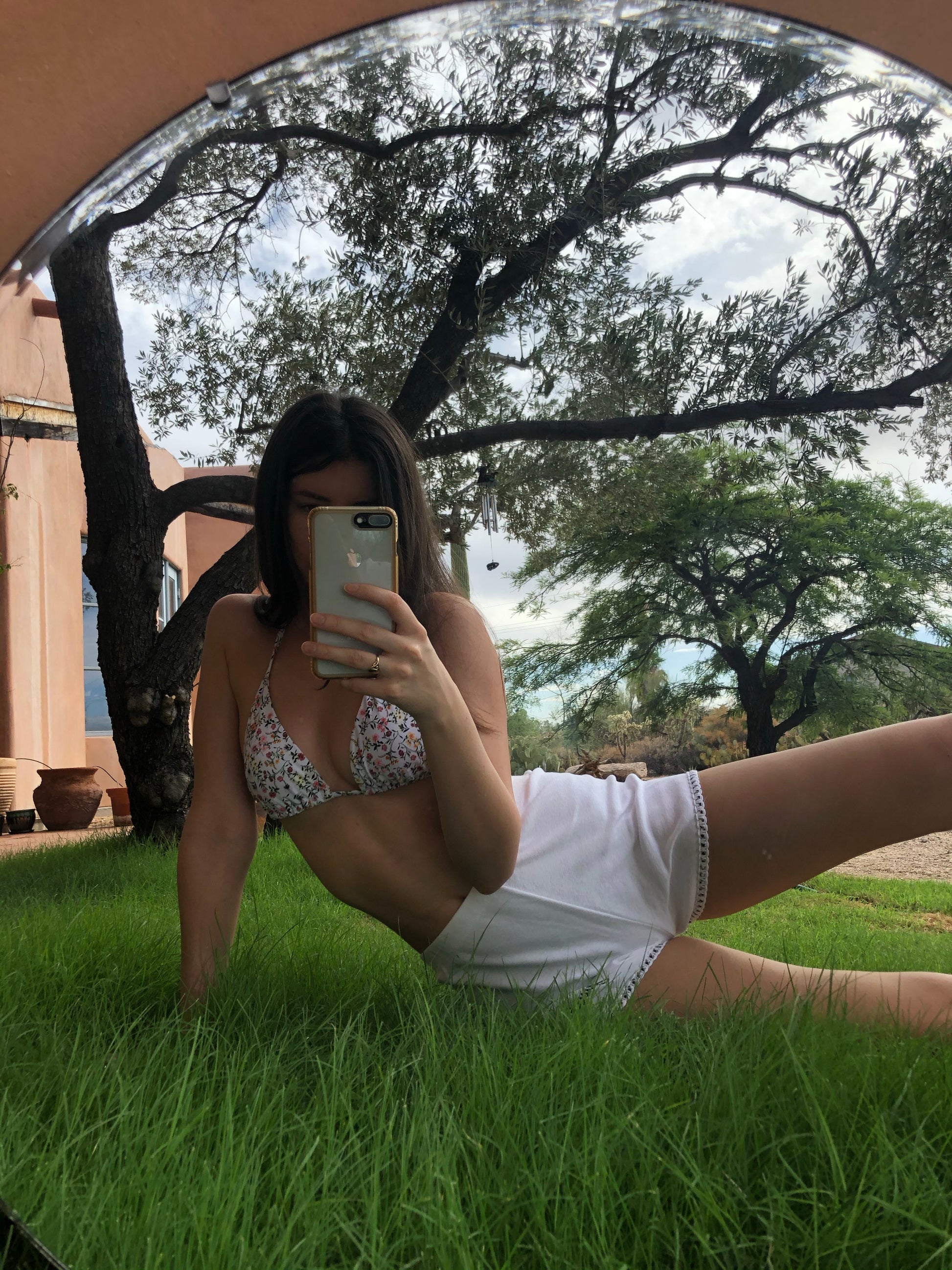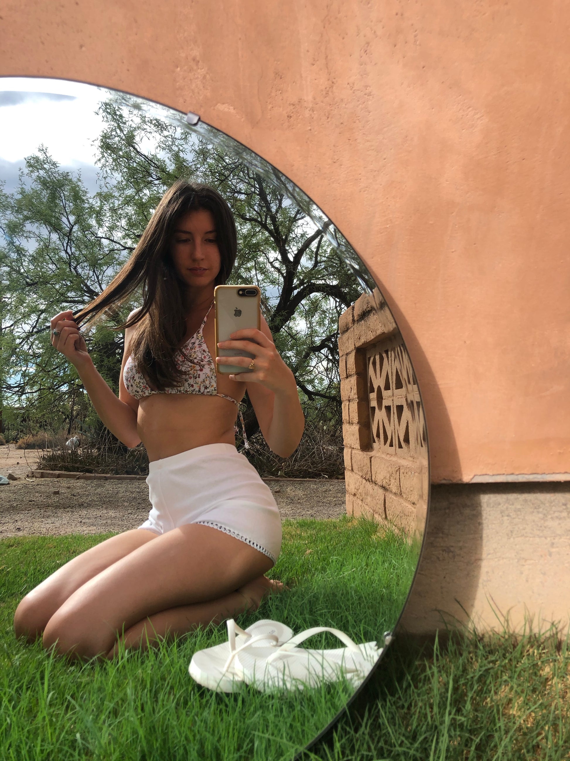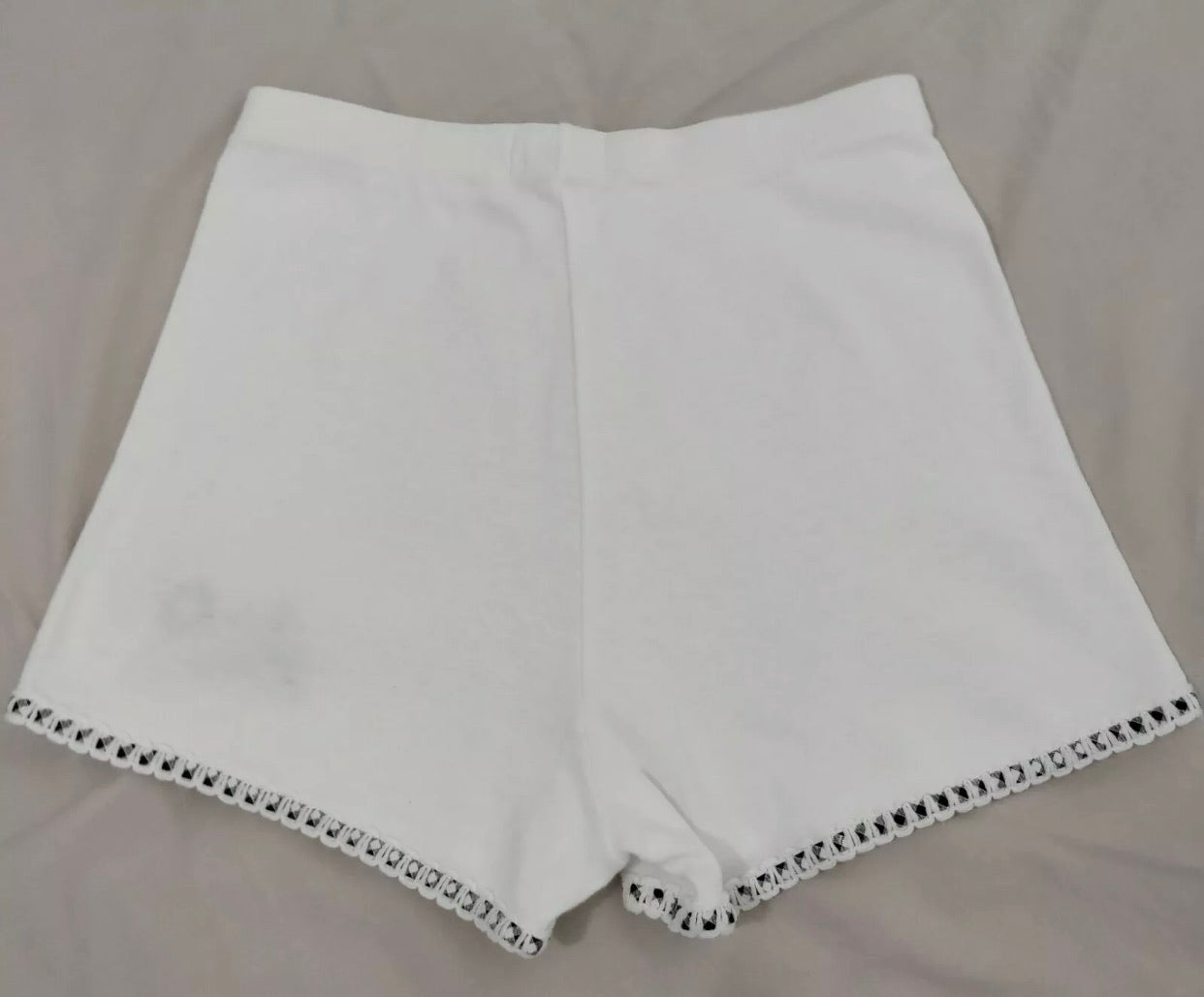 High waist white stretchy Guess shorts with embroidered logo and flower