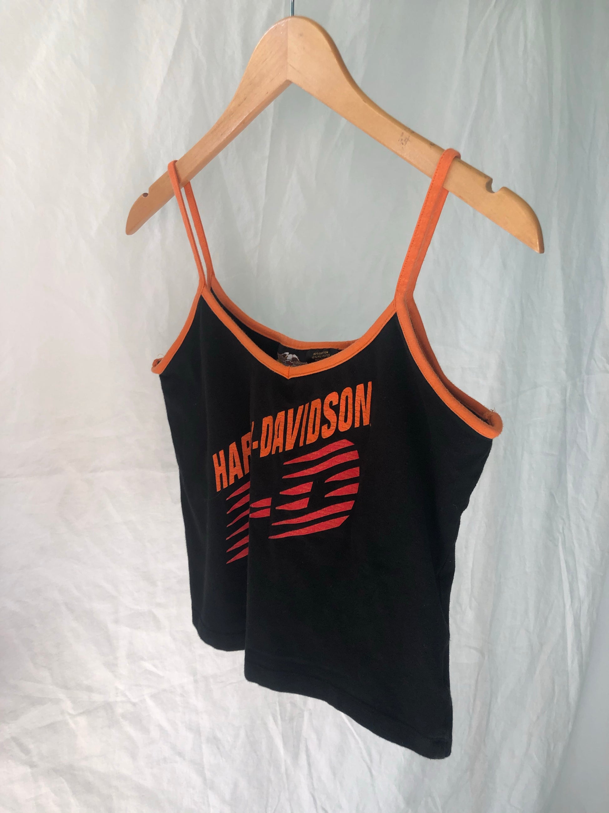 Orange spaghetti strap built in bra Harley Davidson Tank with y2k βHDβ front logo π€