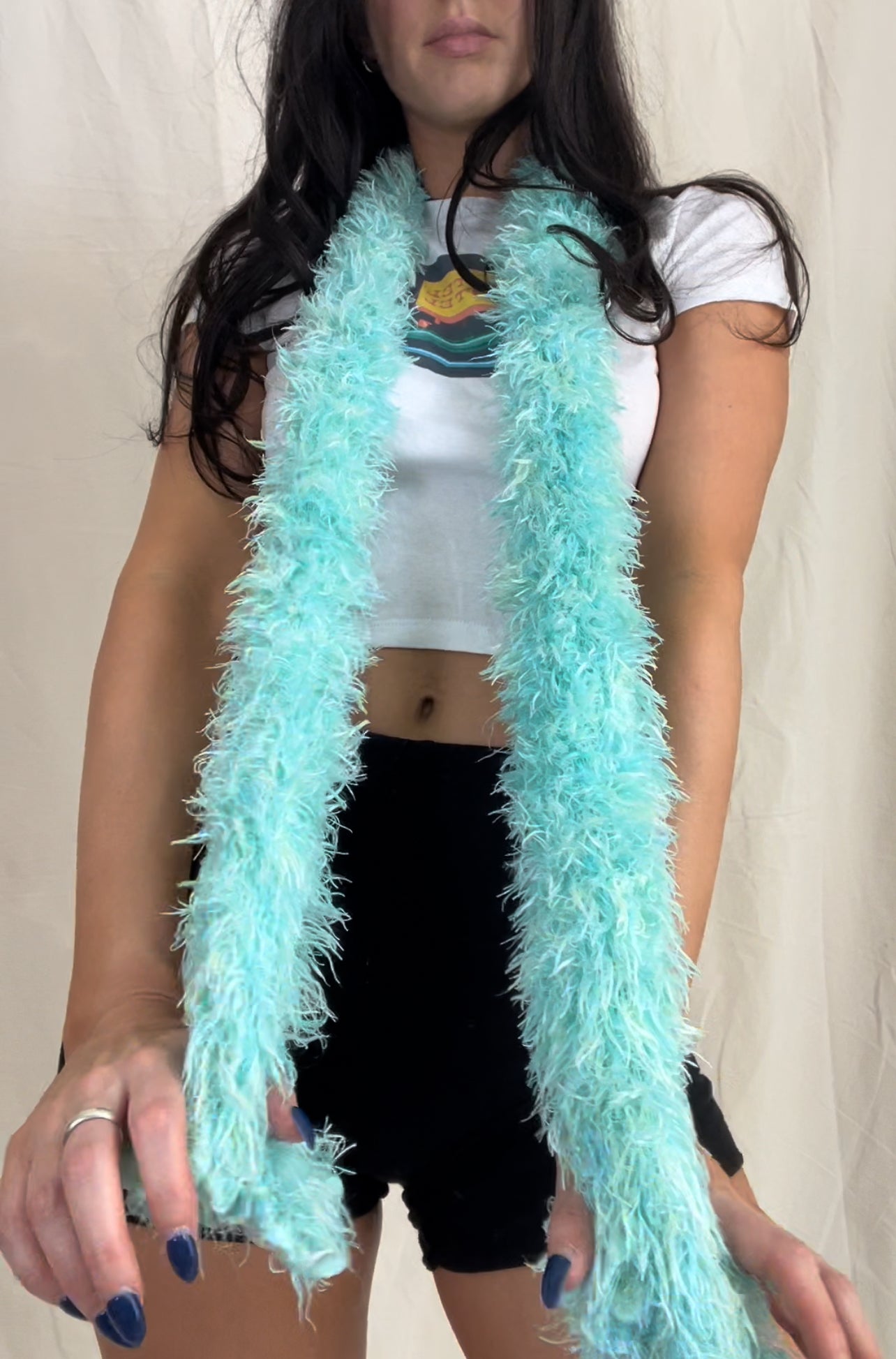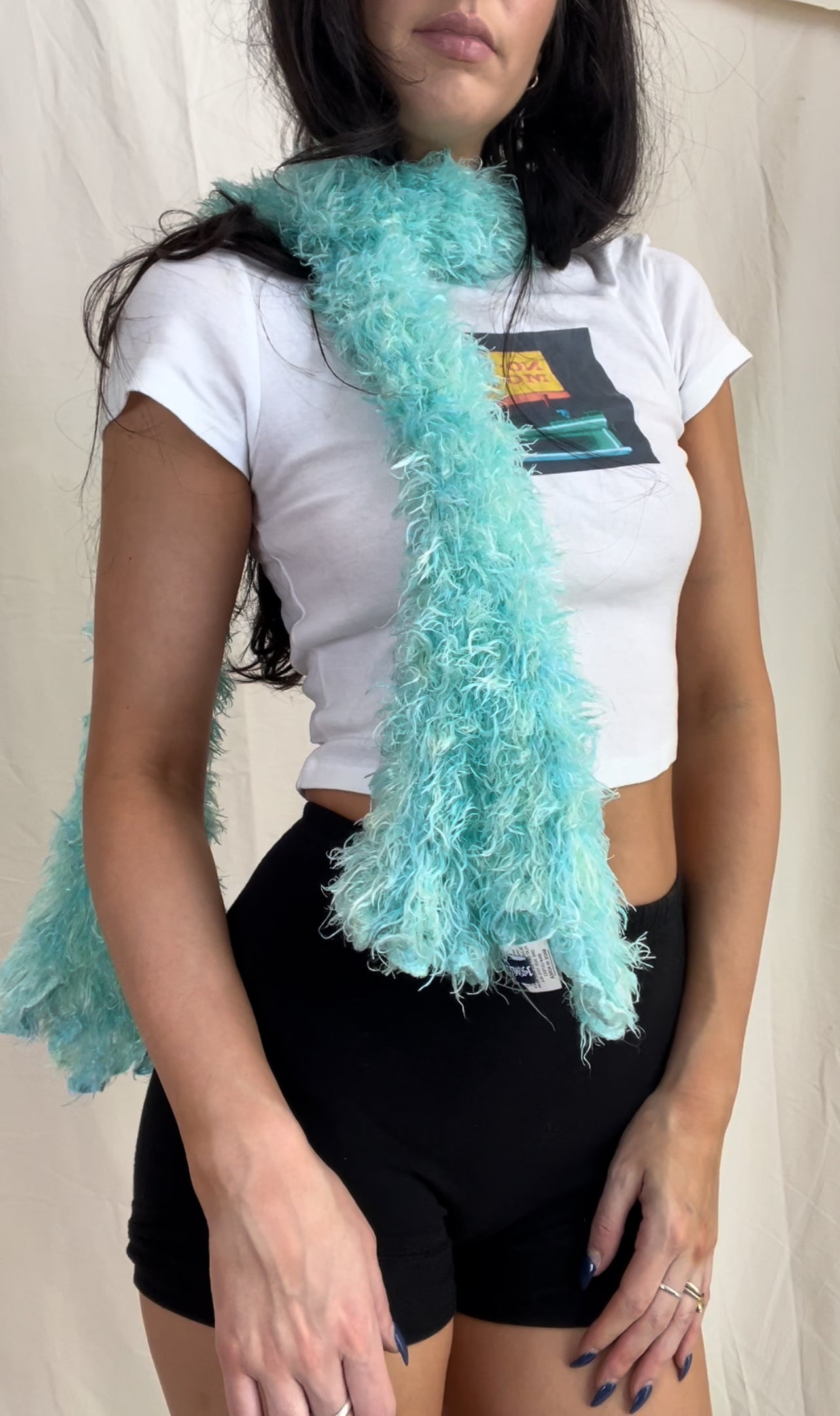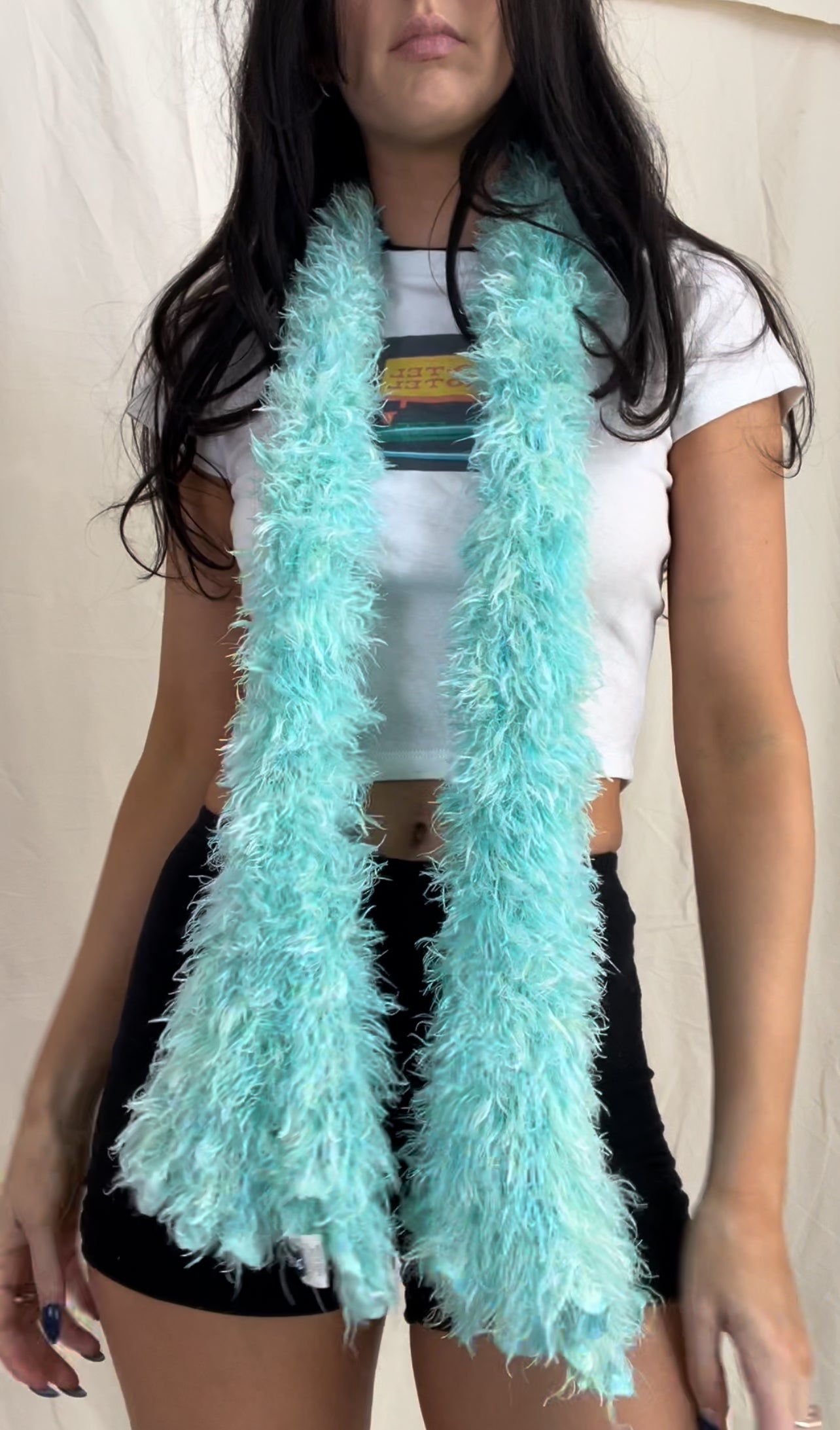 Vintage y2k Limited Too teal and lime multi colored fuzzy trumpeted skinny neck scarf.