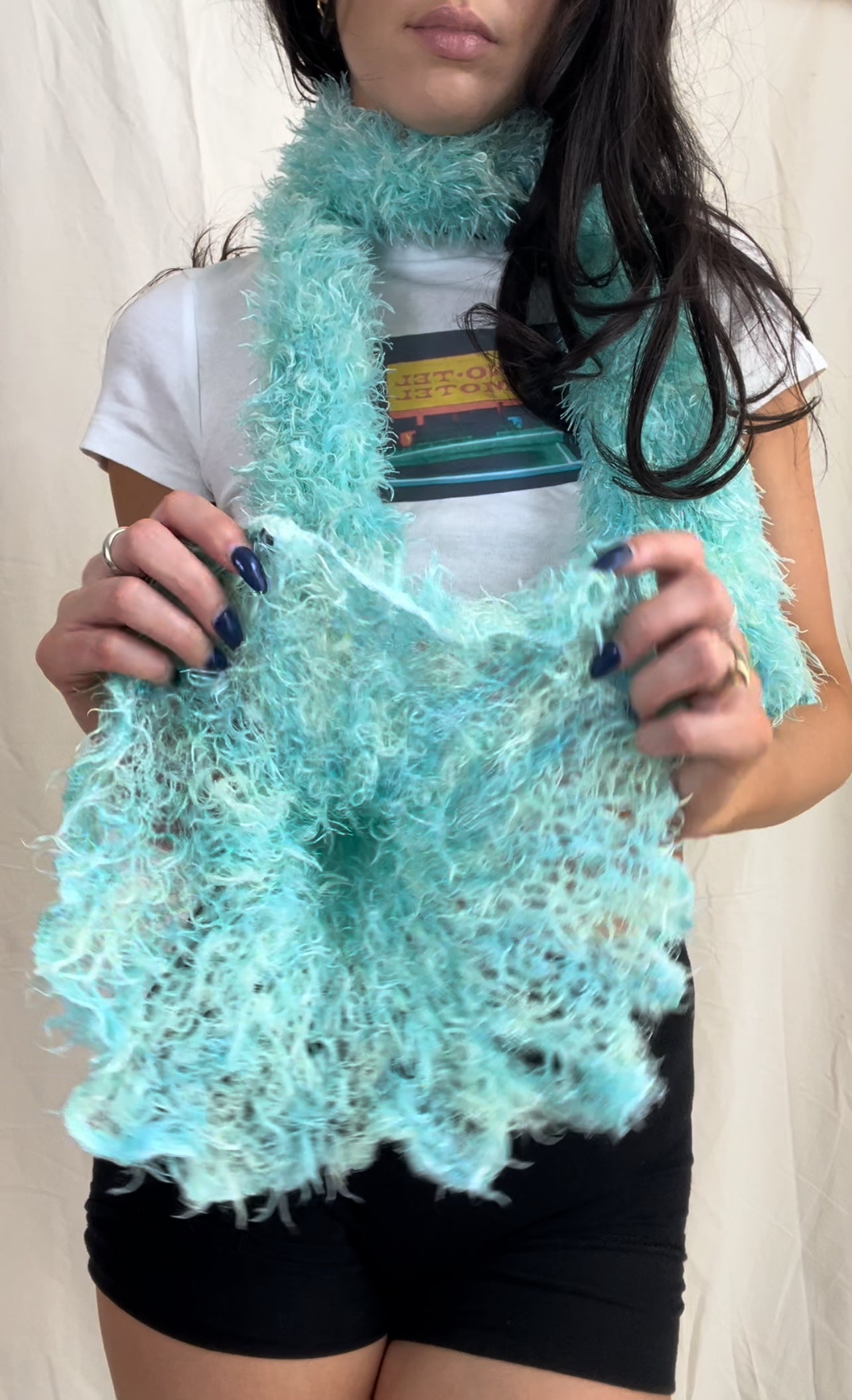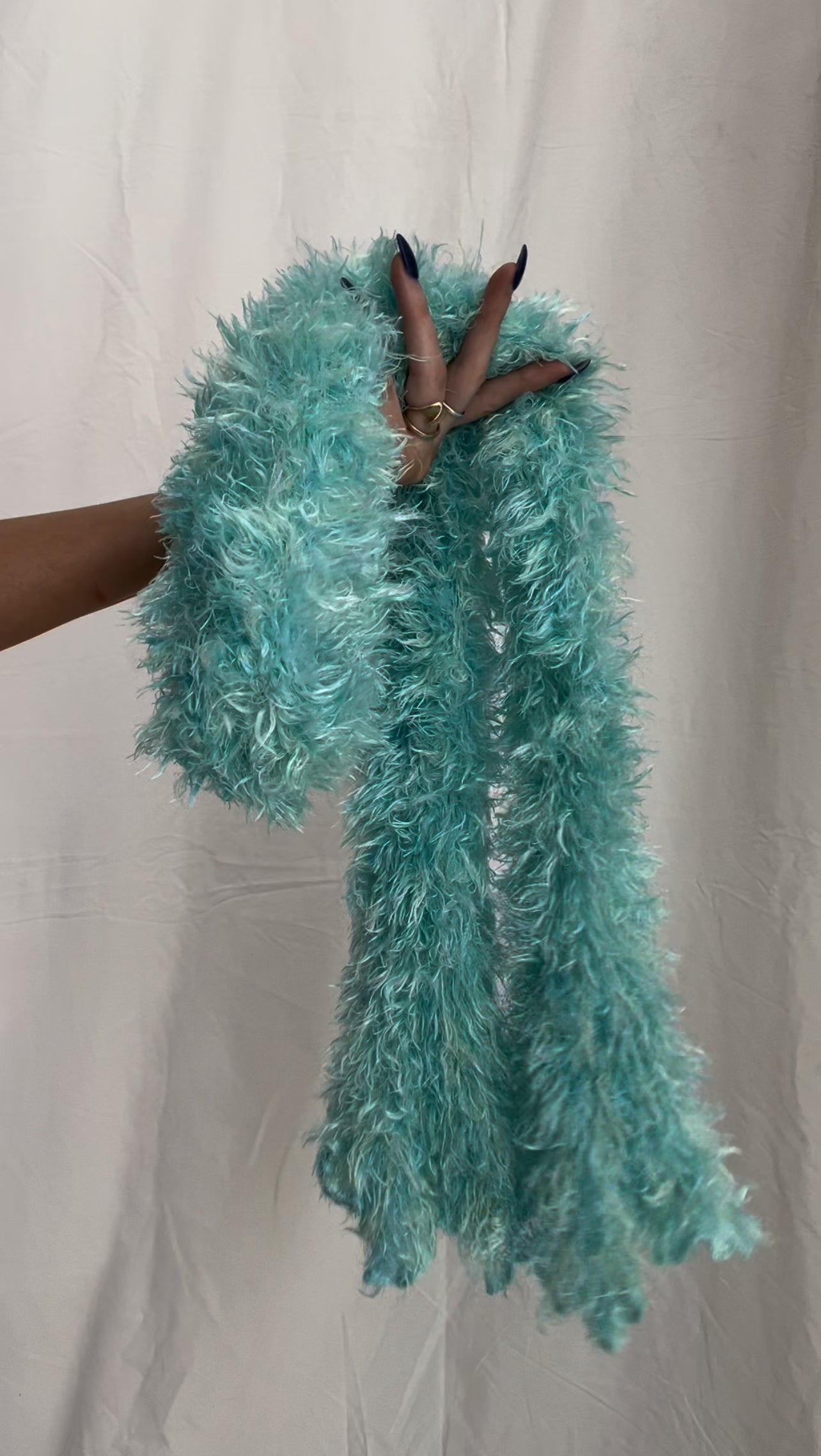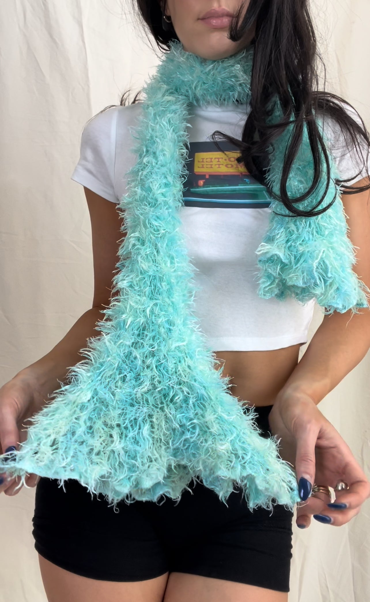 Vintage y2k Limited Too teal and lime multi colored fuzzy trumpeted skinny neck scarf.